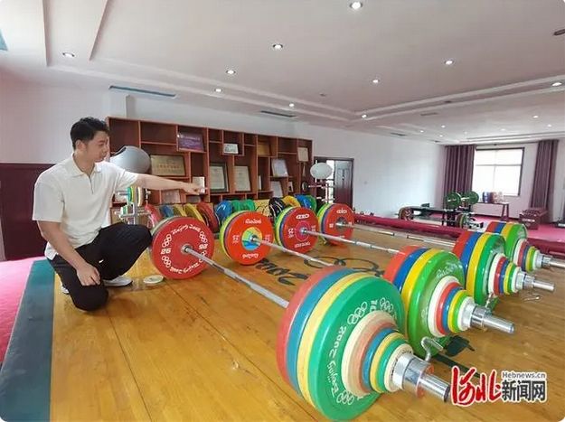 7月24日,河北杠铃企业工作人员展示为北京奥运会、里约奥运会、东京奥运会等国际赛事生产的杠铃。河北新闻网