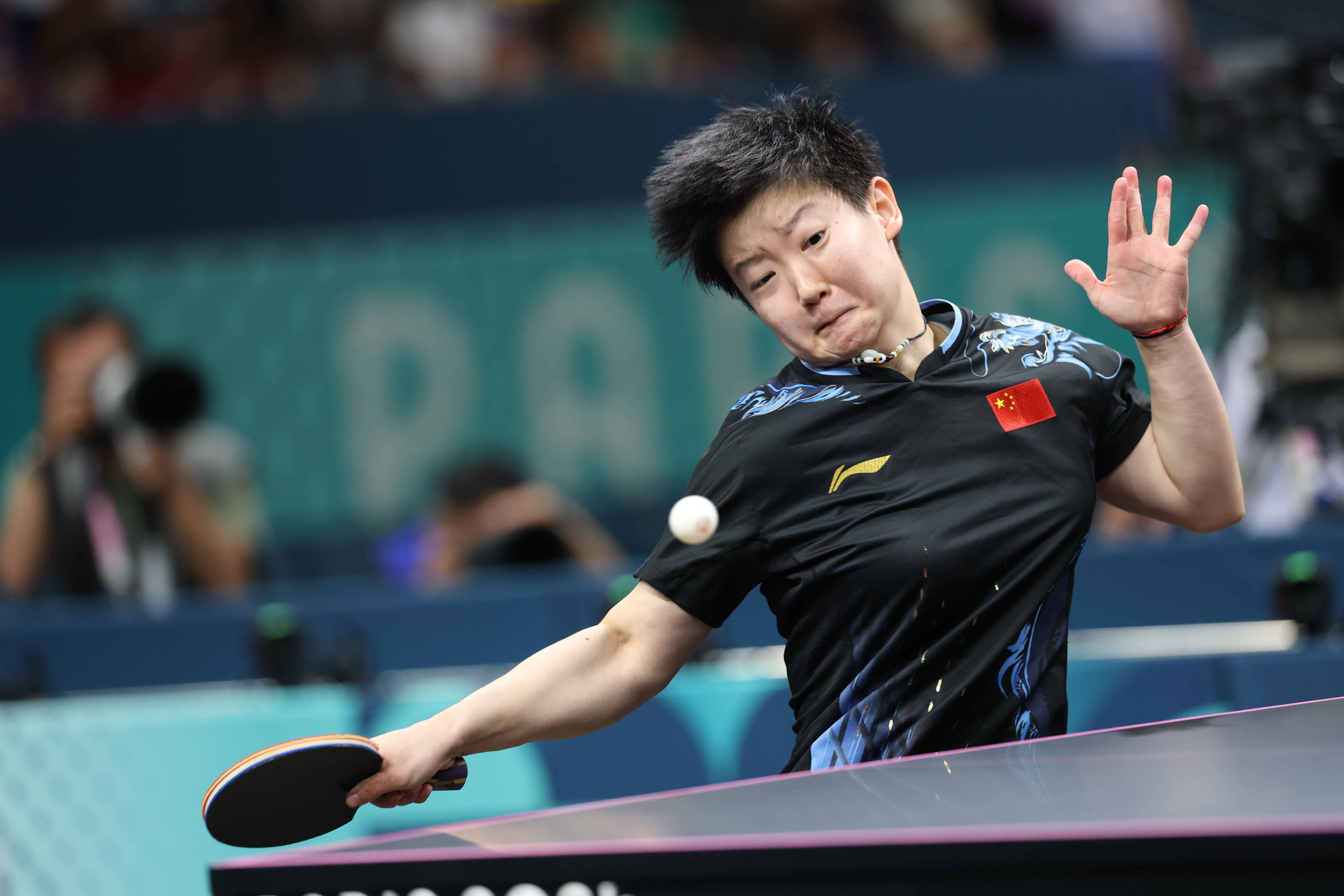 当地时间8月3日,在巴黎奥运会乒乓球女子单打比赛中,中国选手孙颖莎2比4不敌中国选手陈梦,获得亚军。图为孙颖莎在比赛中。中新社