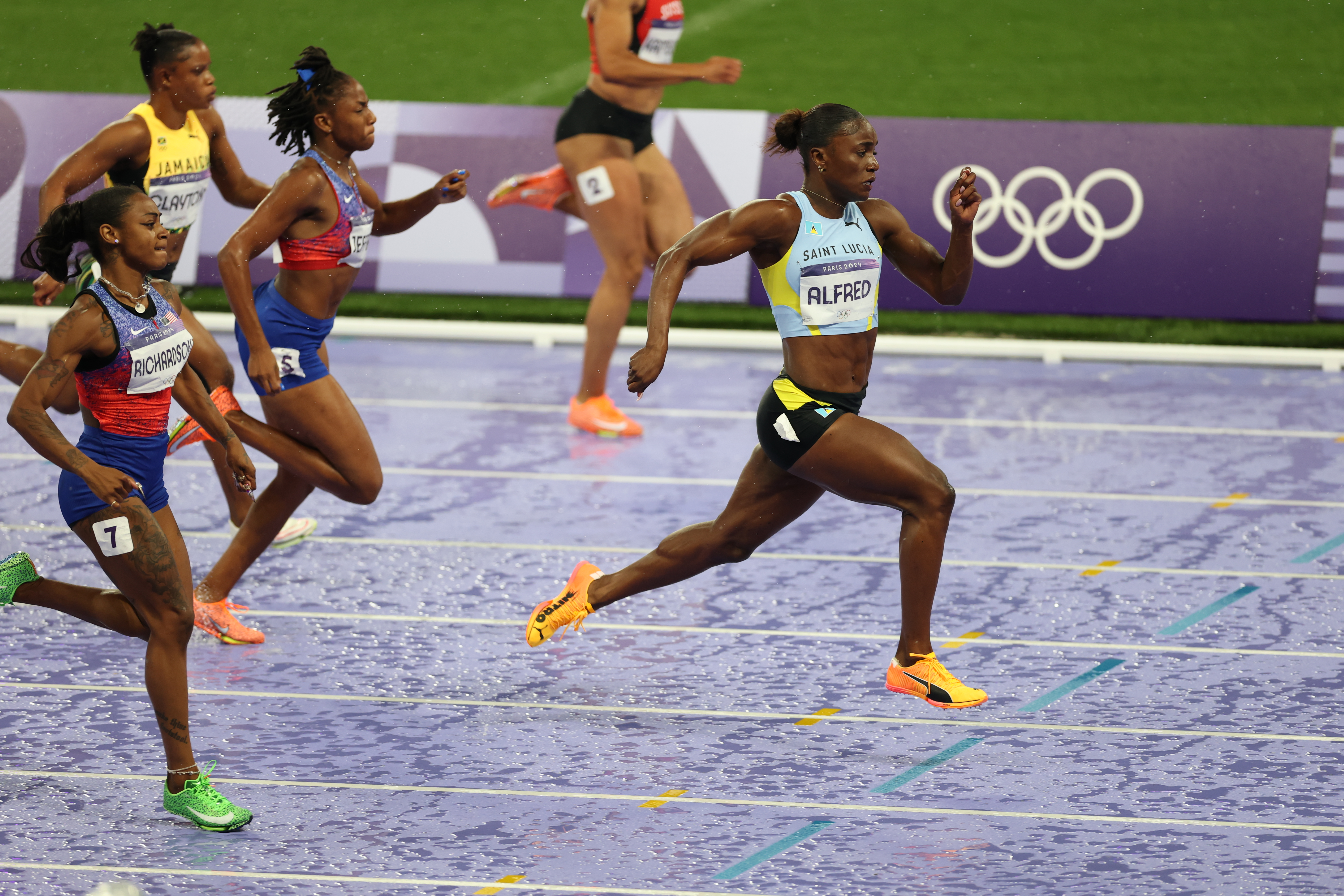 当地时间8月3日,在巴黎奥运会田径女子100米决赛中,圣卢西亚选手阿尔弗雷德以10秒72的成绩夺冠。中新社