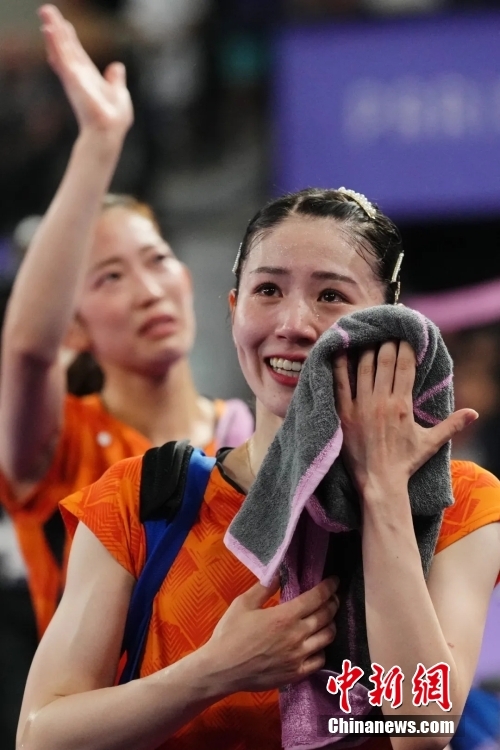 当地时间8月3日,在巴黎奥运会羽毛球女子双打铜牌赛中,日本队组合松山奈未/志田千阳2比0战胜马来西亚组合陈康乐/蒂娜,获得铜牌。图为松山奈未/志田千阳(前)在比赛后。中新网