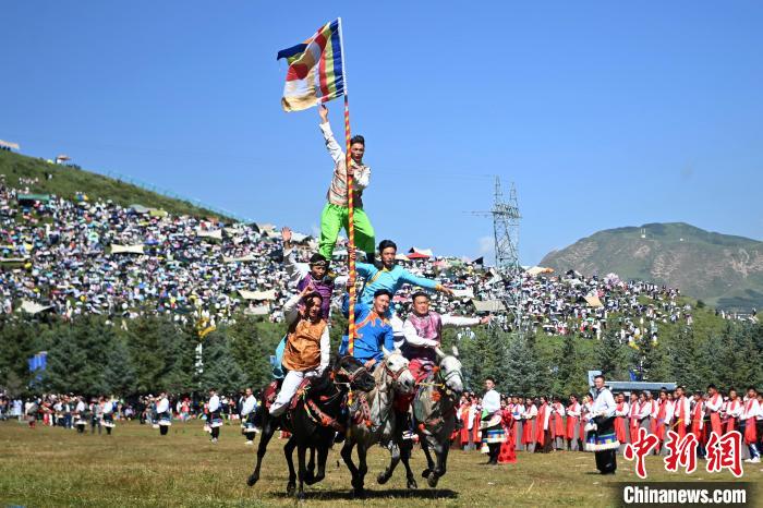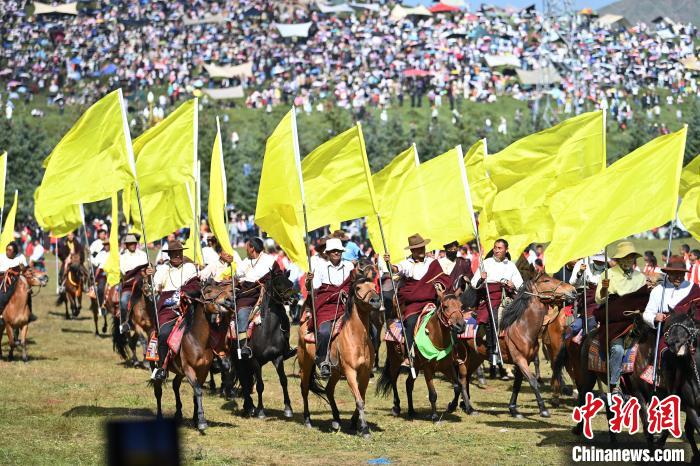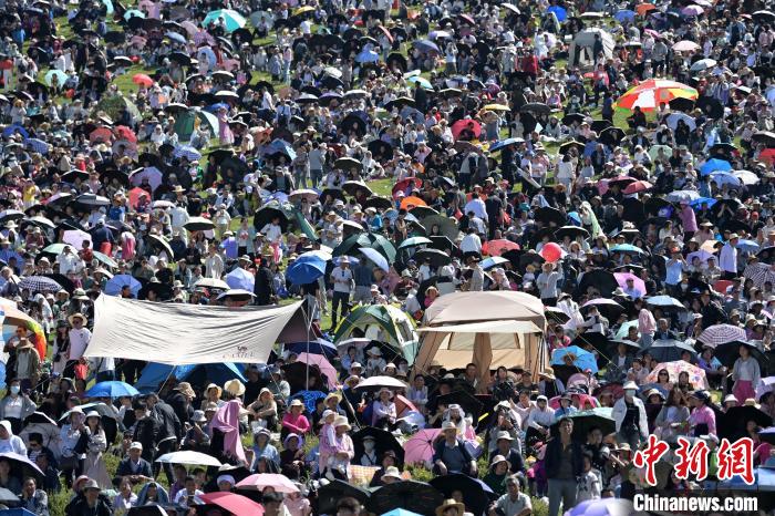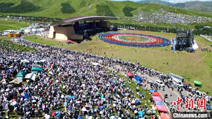 人们在当周草原观看九色甘南香巴拉旅游艺术节开幕式表演。中新网