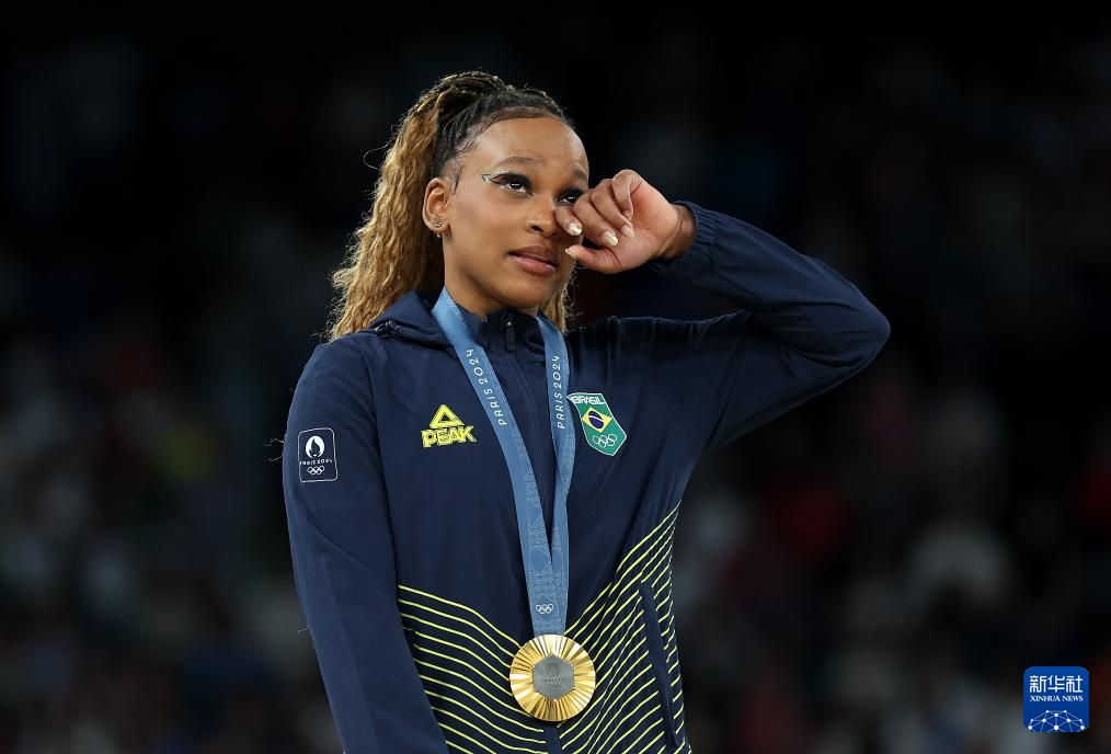 这枚自由操金牌是安德拉德在巴黎奥运会获得的第四块奖牌,此前她已经获得个人全能和跳马银牌以及女子团体铜牌。再加上东京奥运会跳马金牌和个人全能银牌,她成为巴西历史上获得奥运奖牌最多的运动员。图为8月5日,安德拉德在比赛中。中新社