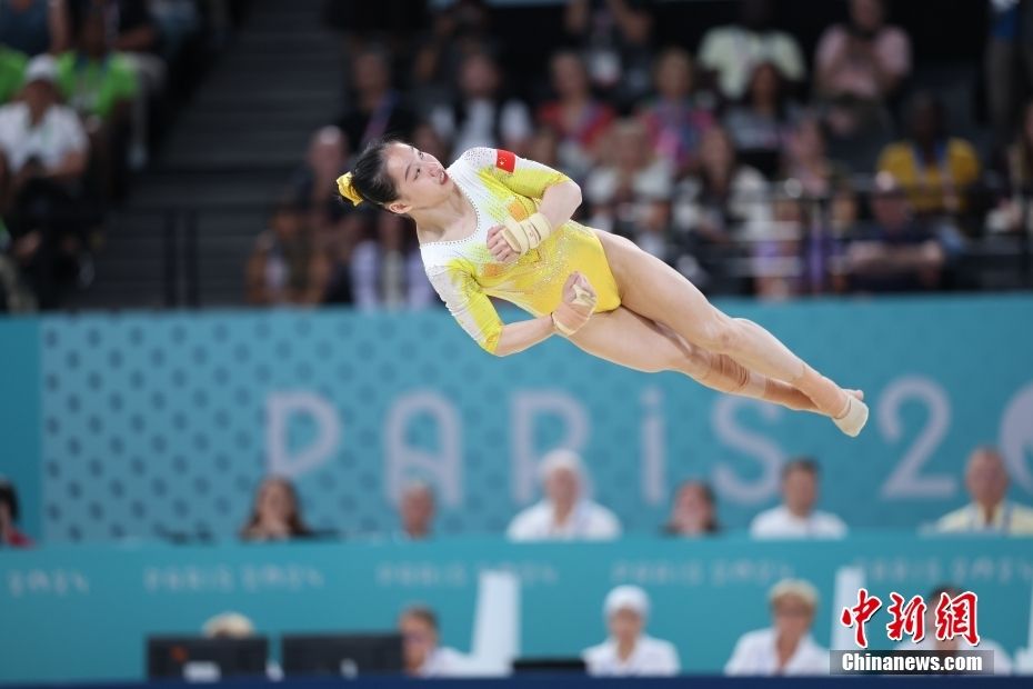 8月5日,巴黎奥运会体操女子自由操决赛,中国选手欧钰珊在比赛中。中新网