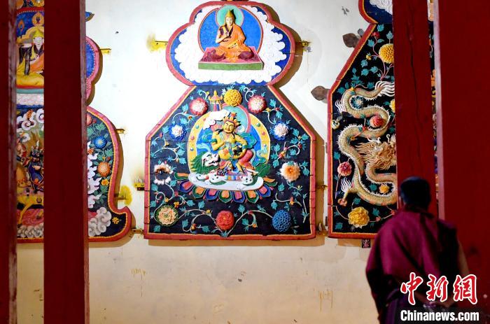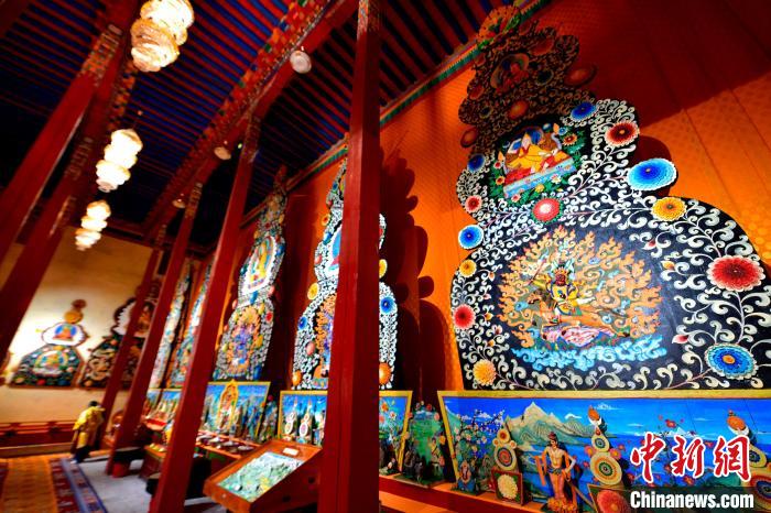 酥油花以酥油为主要原料,手工精雕细捏而成,造型多样,色彩丰富。位于西藏那曲市索县的藏传佛教寺院琼科寺酥油花制作历史悠久,琼科寺酥油花是西藏自治区第五批自治区级非物质文化遗产代表性项目。图为8月5日琼科寺内展示的酥油花。