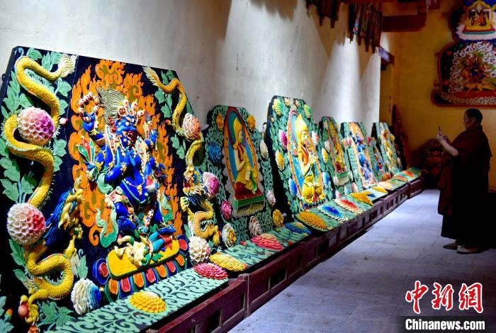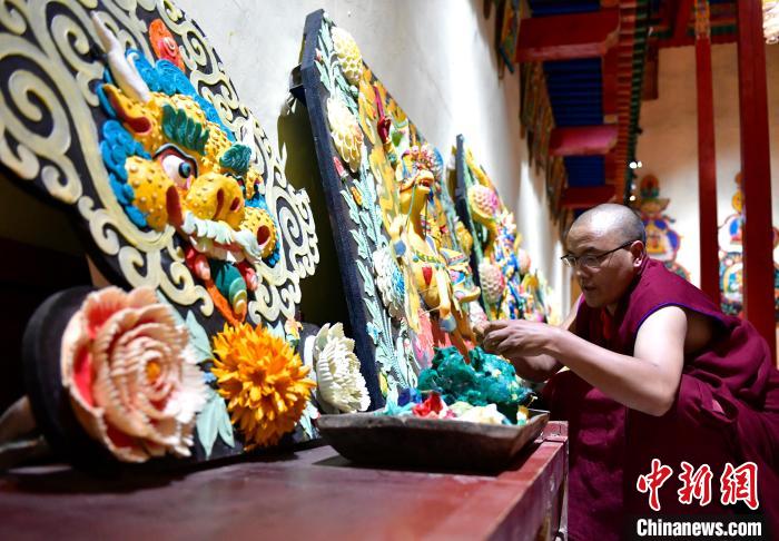 8月5日,琼科寺内僧人在拍摄酥油花。