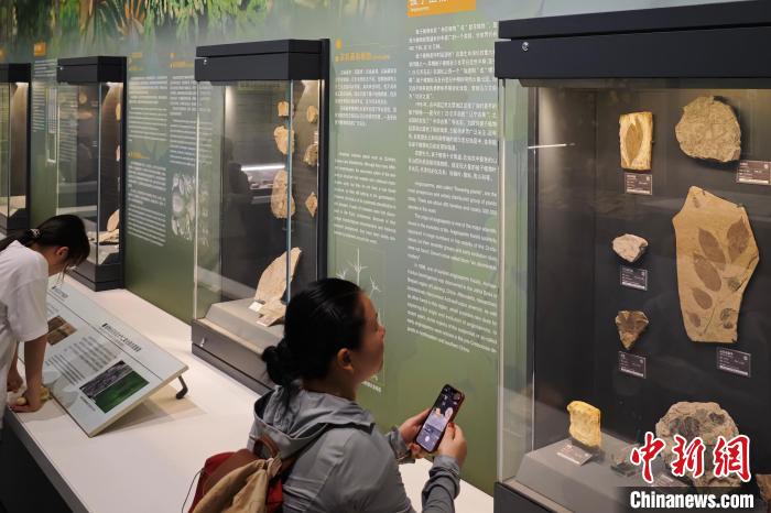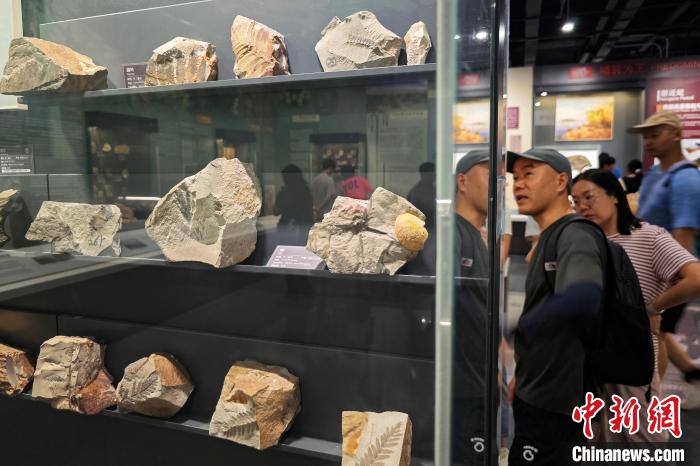 8月8日,观众在南京古生物博物馆内参观植物化石。中新网