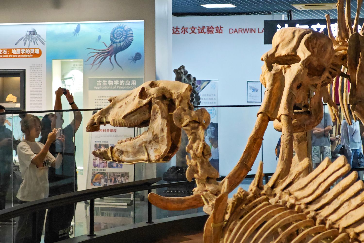 8月8日,观众在南京古生物博物馆内参观。中新网