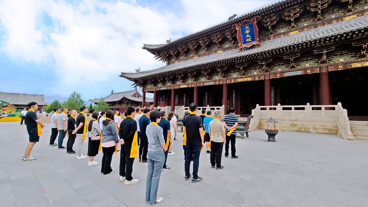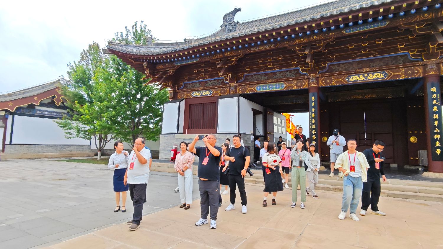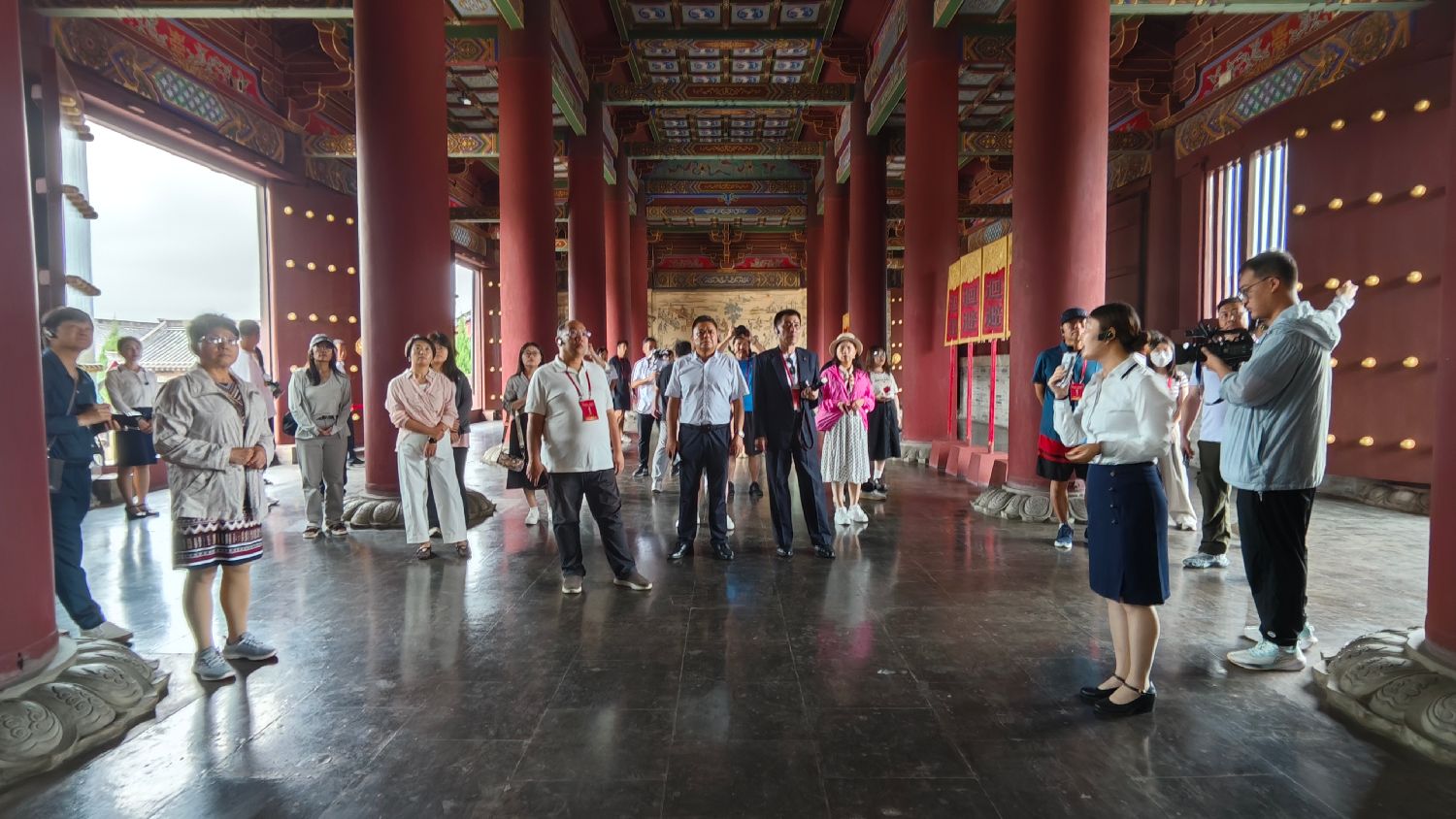 8月9日,参加2024“行走中国·报道中国”海外华文媒体山西行活动的华文媒体代表前往山西省晋城市高平炎帝陵景区,寻访炎帝神农遗迹传说。图为8月9日,海外华文媒体代表在炎帝大殿驻足拍照。宋屿摄