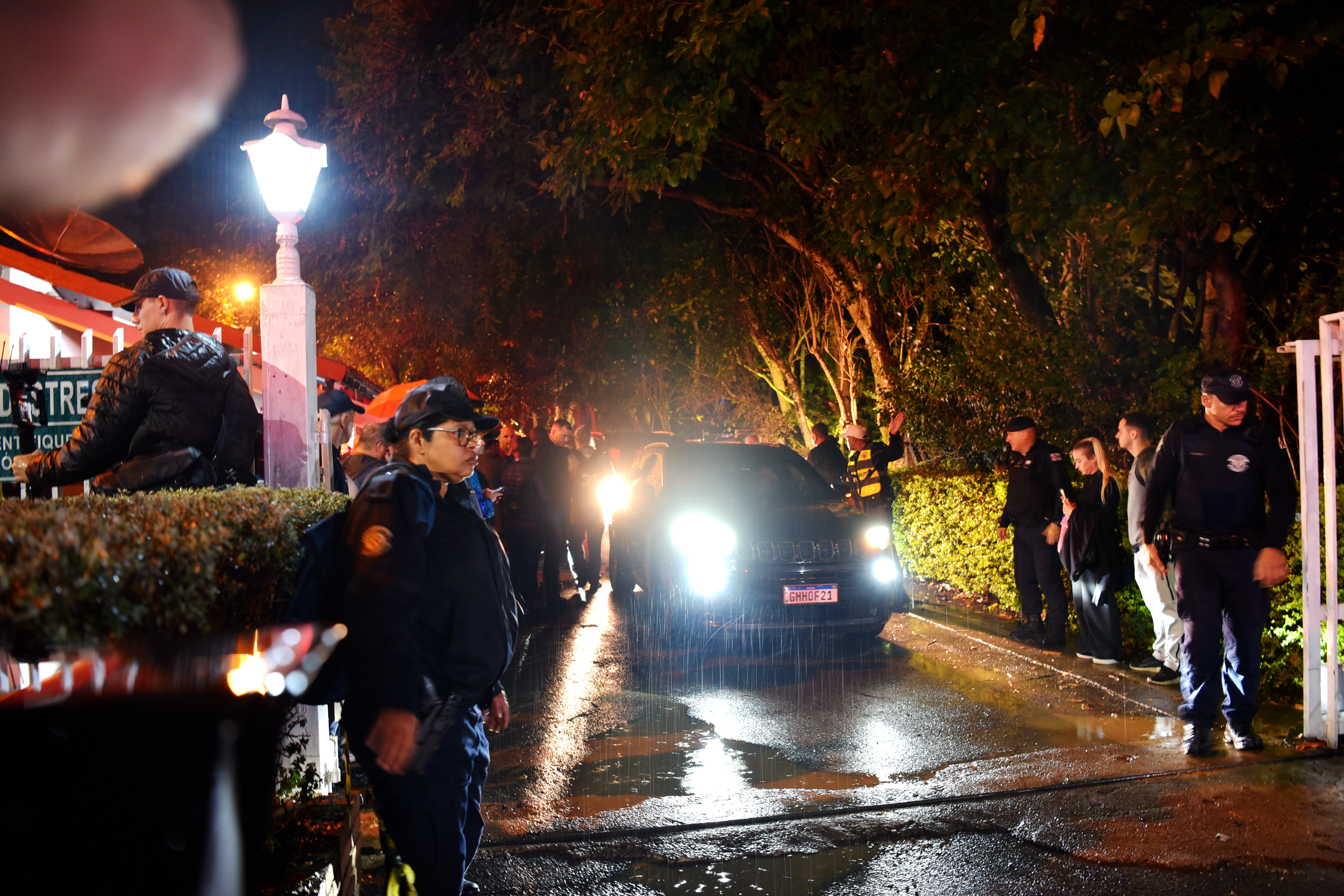 8月9日,第一批12具遇难者遗体送往圣保罗司法鉴定中心。图为坠机现场,车辆驶出小区。中新社