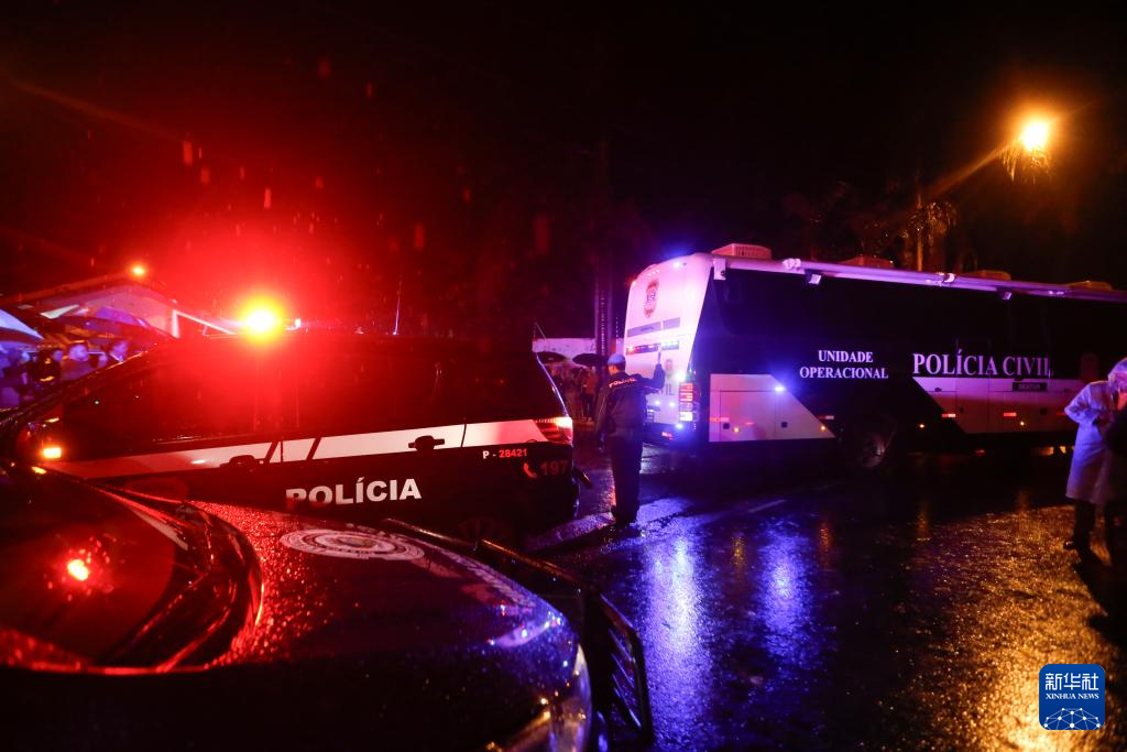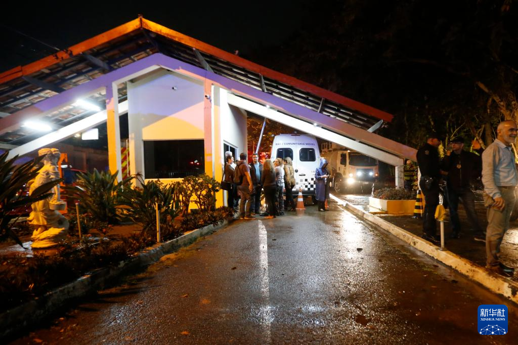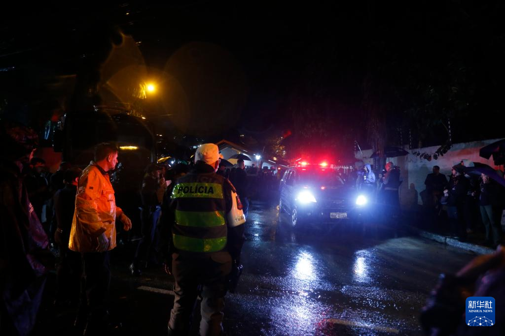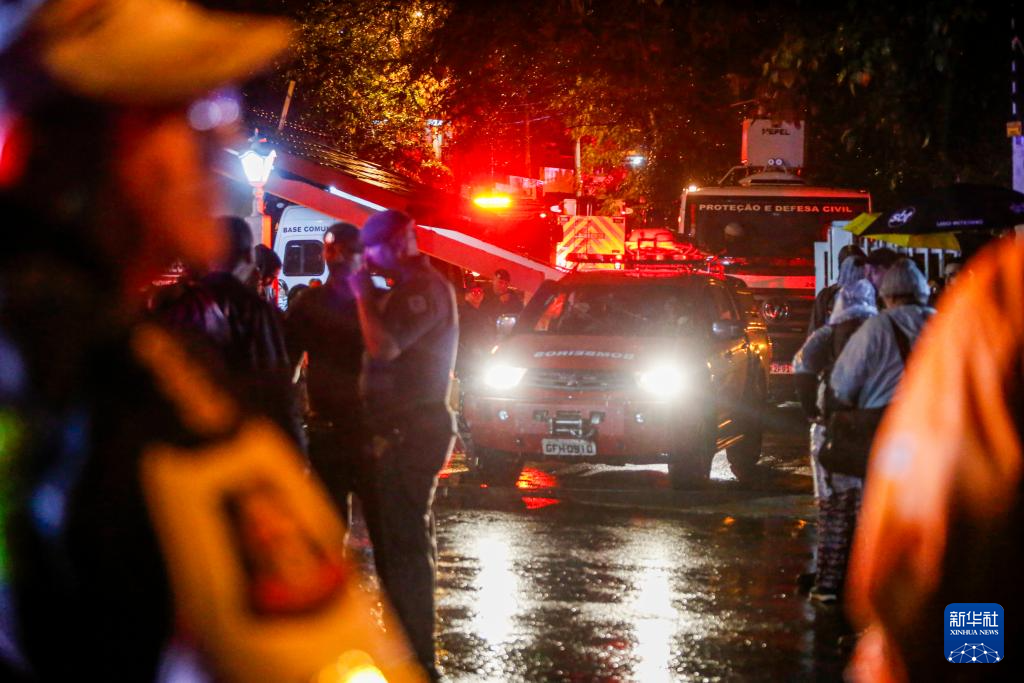 8月10日上午,根据坠毁客机航司沃帕斯航空公司最新公告,由于值机系统问题,遇难者人数再次被修正为62人,包括58名乘客和4名机组人员。图为8月9日在巴西圣保罗州维涅杜市坠机现场附近拍摄的警车与消防车。新华社