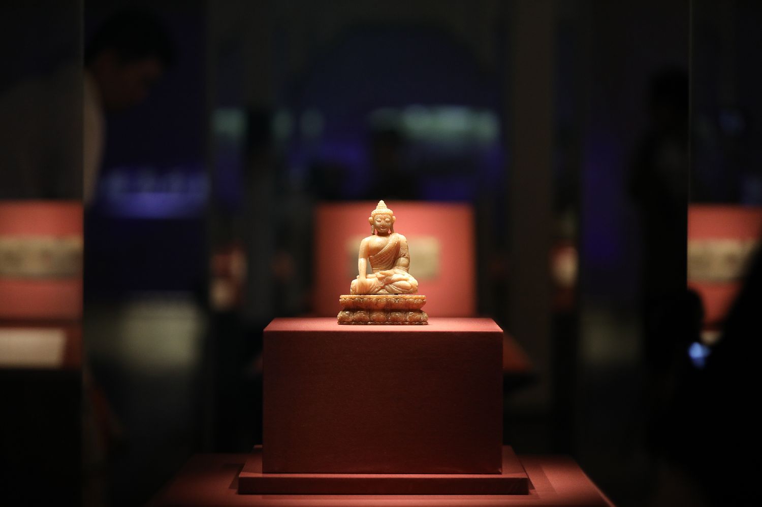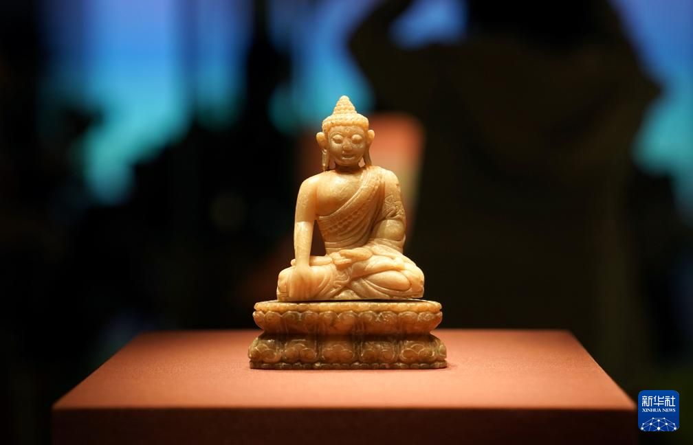 8月13日在上海圆应塔遗珍展上拍摄的青田石佛坐像。新华社