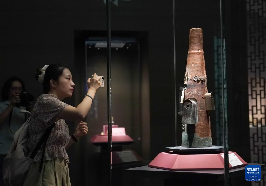 8月13日,“宝塔乾坤:上海圆应塔遗珍展”在上海博物馆东馆预展,于8月14日至11月11日向公众免费开放。2024年正值圆应塔完成建筑修缮和考古发现30周年。作为上海市现存最高、清理发现文物最多的古塔,圆应塔具有重要的历史、艺术和科学价值。此次展出的300件珍贵文物,将为观众们呈现古代江南文化的独特魅力。图为专家介绍圆应塔塔刹内发现的嵌福禄寿喜盒铜宝珠内胆。中新社