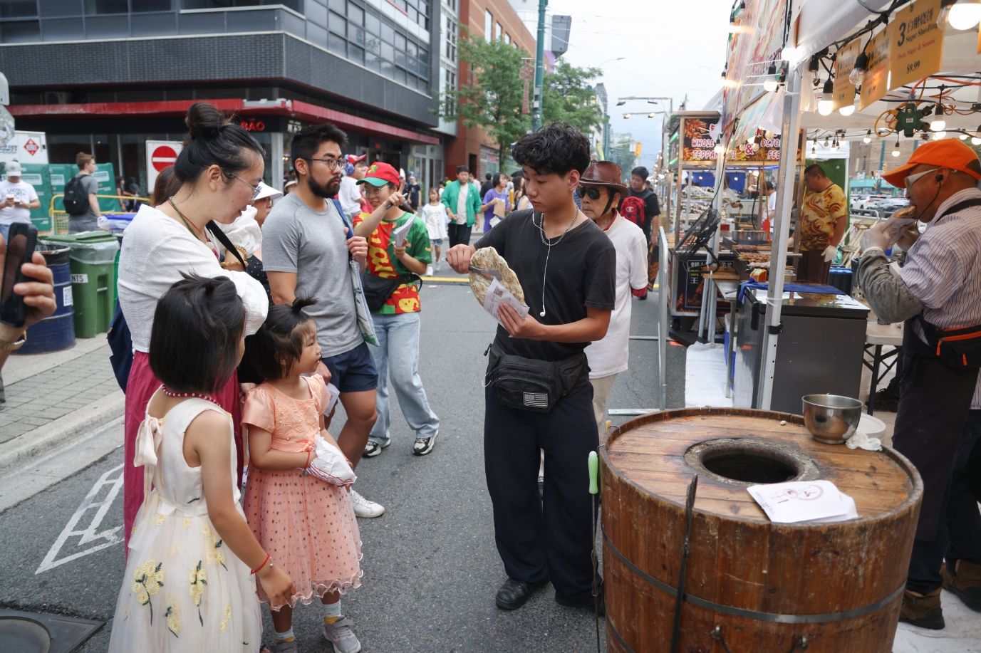 当地时间8月17日,在第24届多伦多中区华埠同乐日活动中,美食区的中式烧饼吸引大小食客。中新社