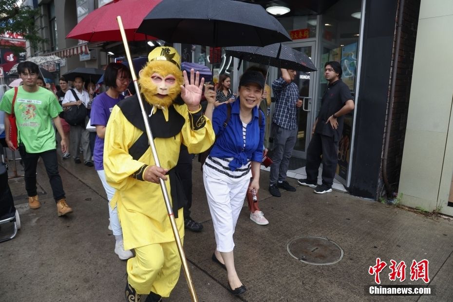 当地时间8月17日,在第24届多伦多中区华埠同乐日活动中,“孙悟空”出现在主办方开展的向游人讲解唐人街历史及华人文化的免费壁画导赏团中。中新网