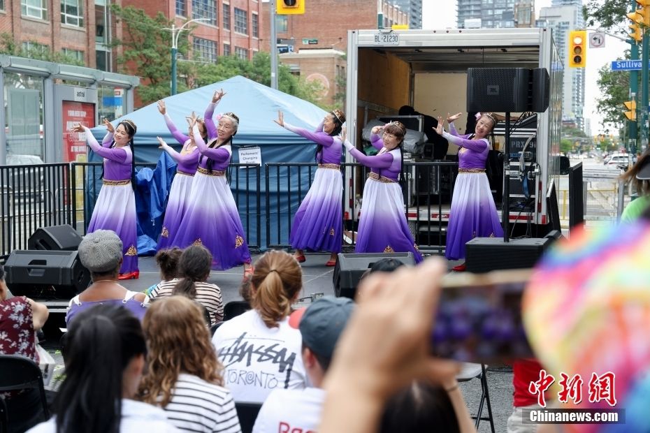 当地时间8月17日,在第24届多伦多中区华埠同乐日活动中,华人文艺团体表演新疆舞蹈。中新网