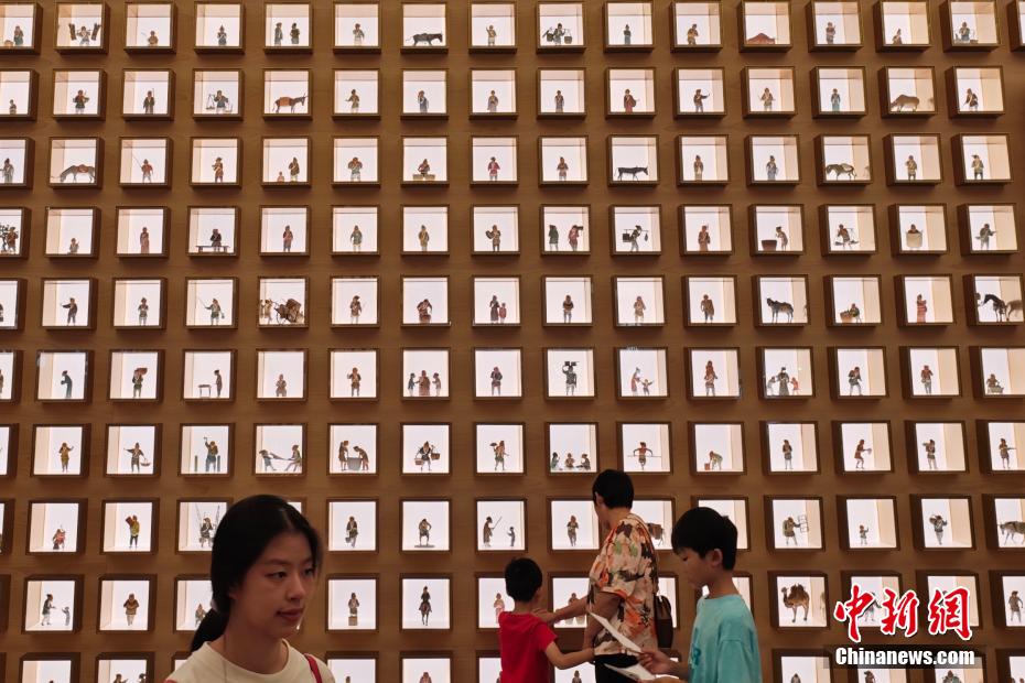 8月19日,观众在德基艺术博物馆内欣赏“金陵图数字艺术展”图中人偶。中新网