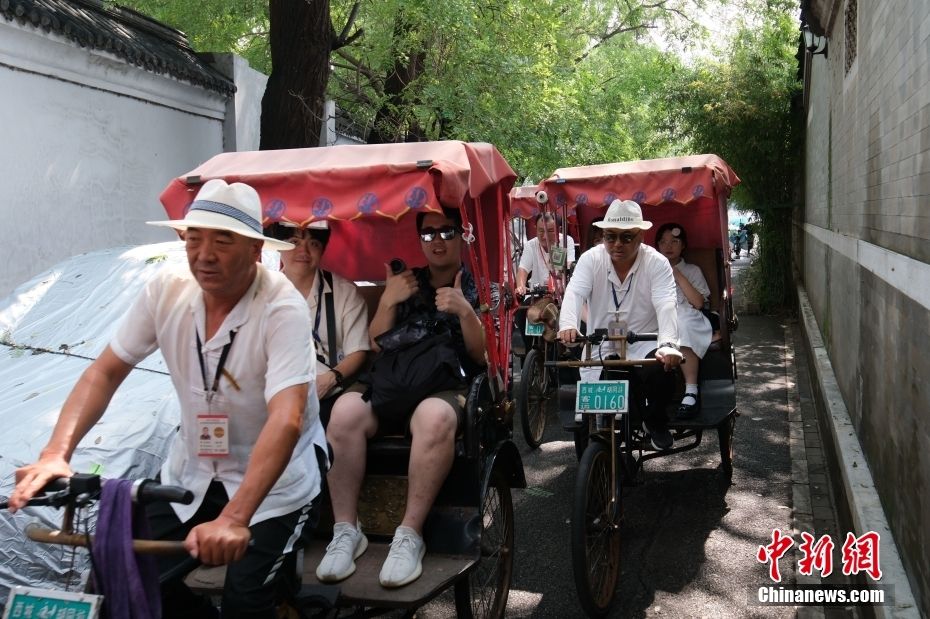 台湾大学生坐“三轮车”参观北京胡同。