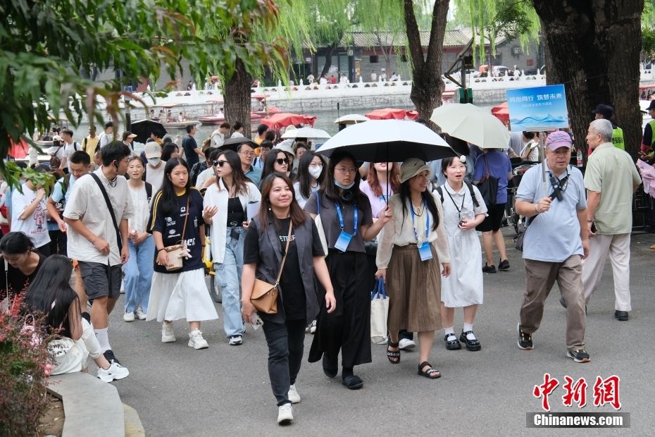 台湾大学生在什刹海参观。