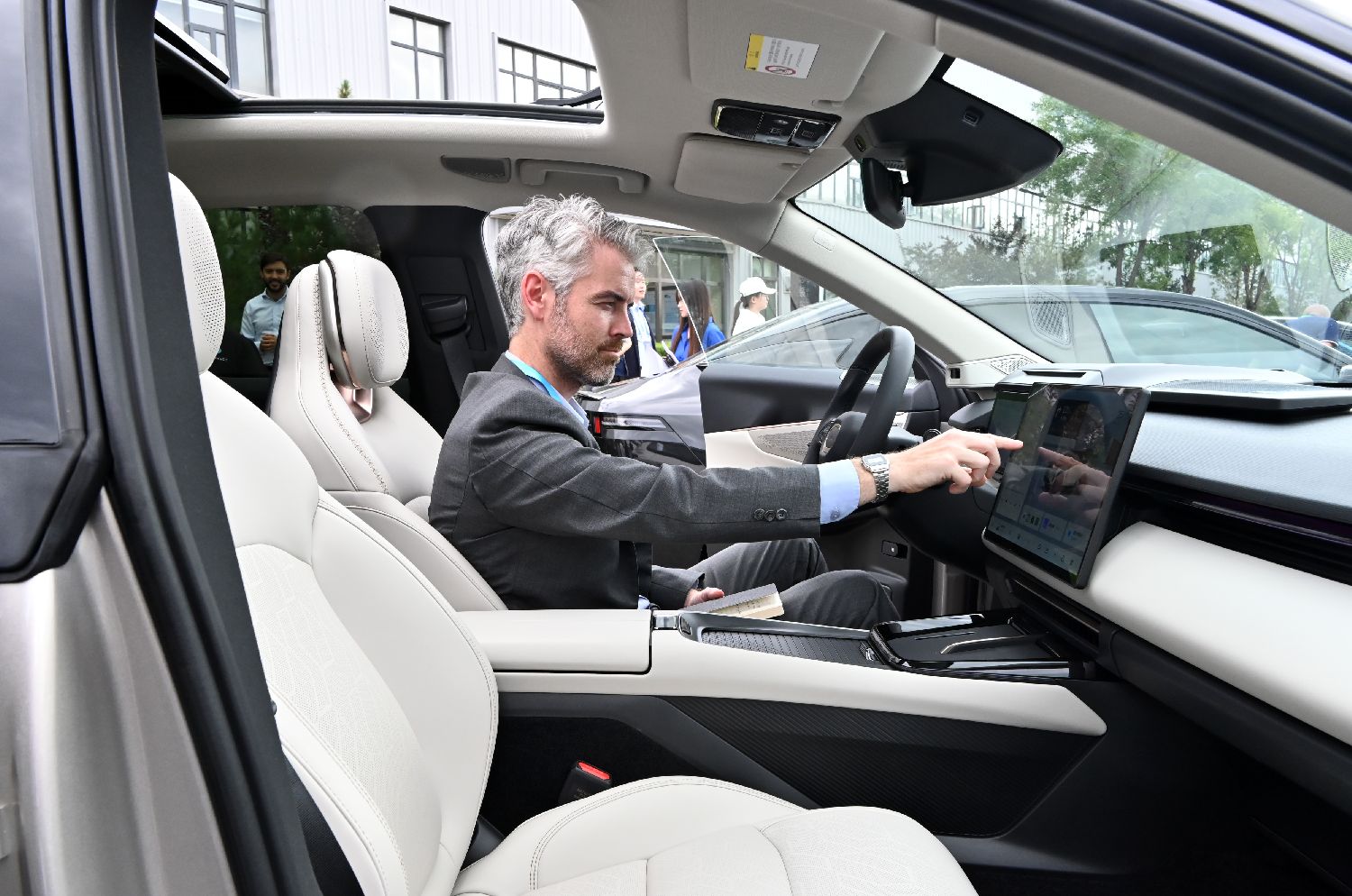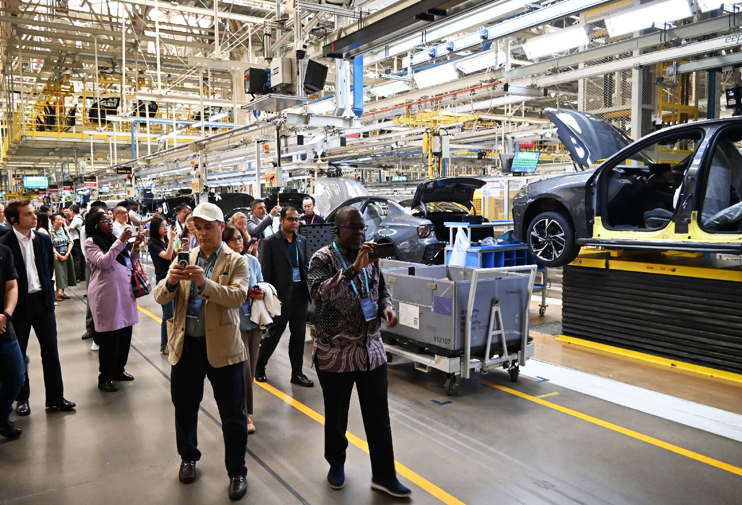使节参观浙江吉利汽车有限公司张家口分公司,体验新能源汽车。中新社