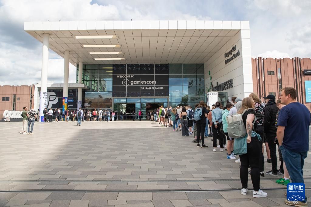 8月21日,在德国科隆,人们排队进入科隆国际游戏展。