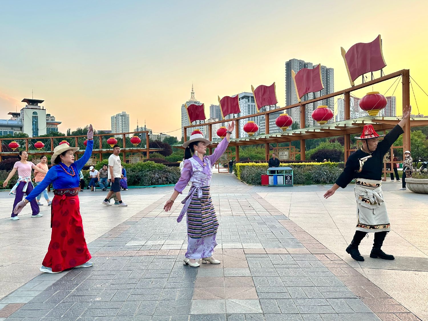 在广场舞的队伍中,有穿着传统服饰的藏舞爱好者,也有穿着便服的市民。有市民表示:“这是饭后的日常活动,大家都会来跳一跳。”毛伯贤/摄