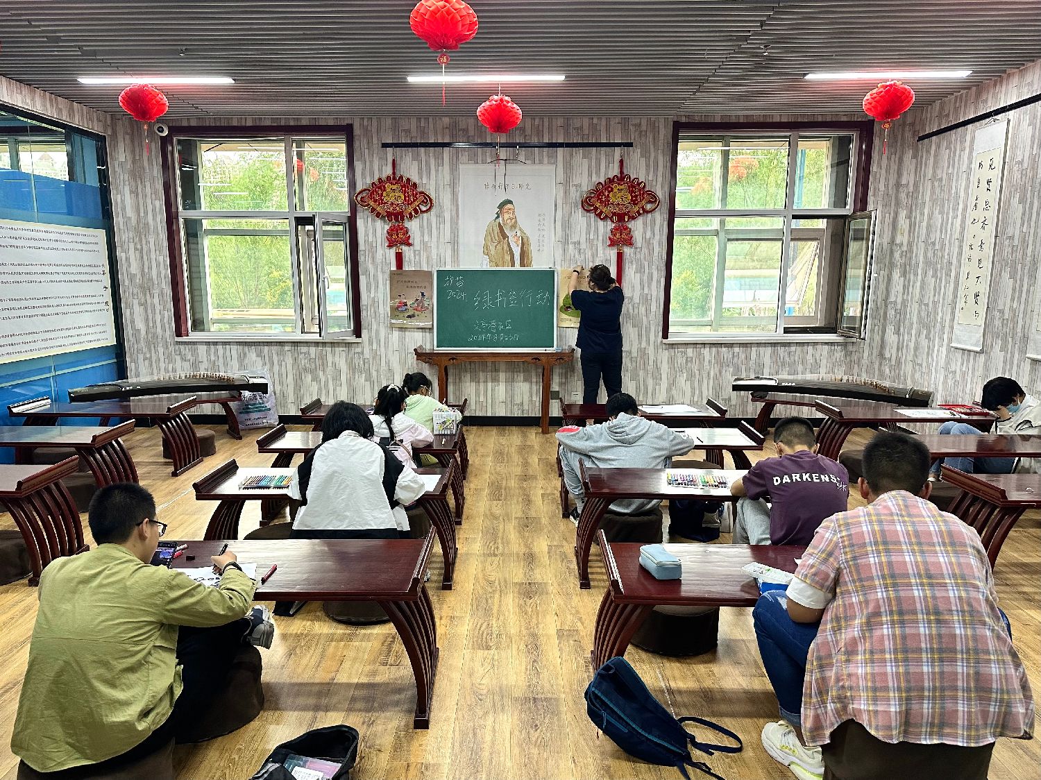 在城西区文亭巷社区的“国学馆”,多民族家庭的孩子们以“绿书签行动”为主题作画。毛伯贤/摄