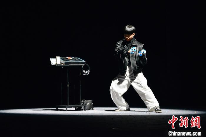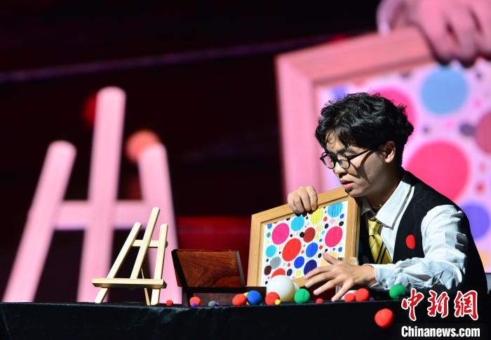 来自福建理工大学的任霖广表演节目《创想圆点》。中新网