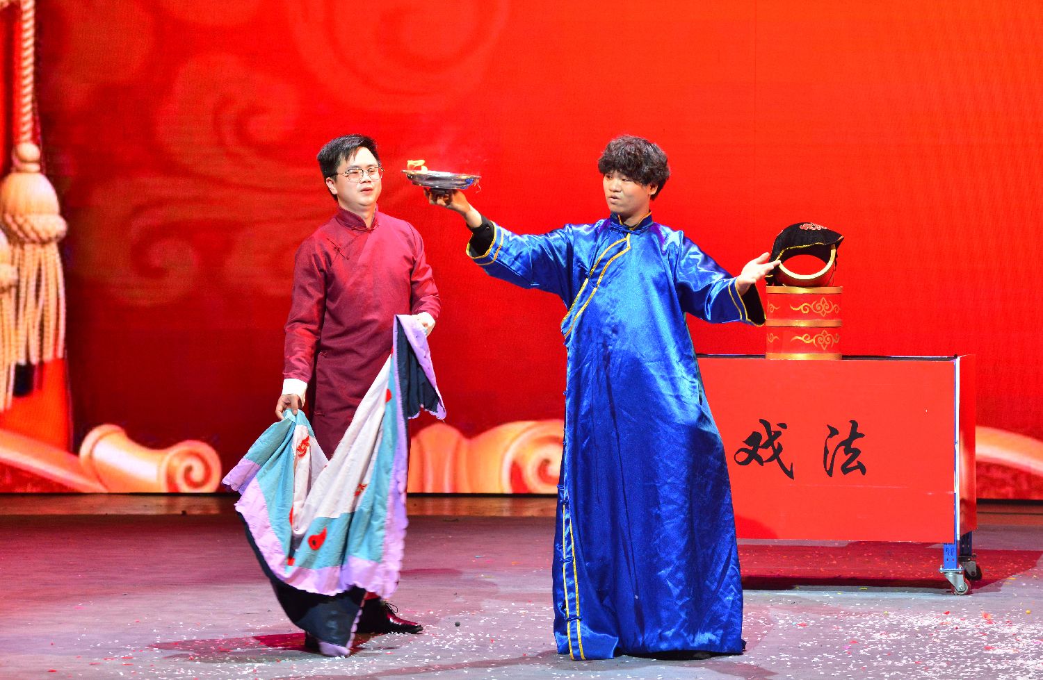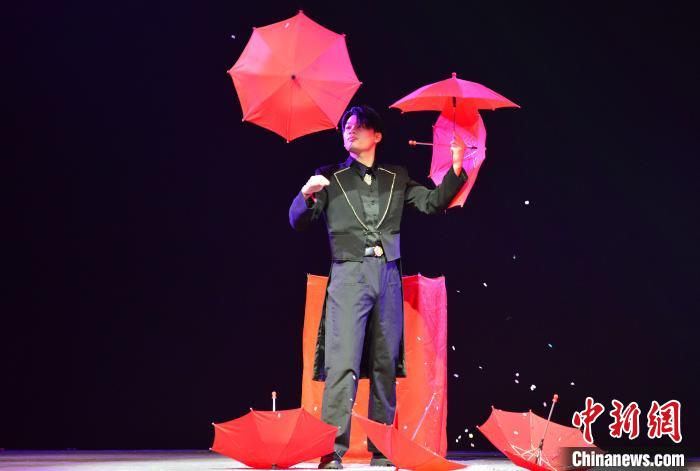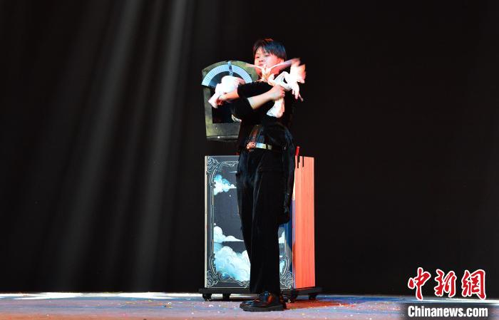 来自福州职业技术学院的学生表演节目《中国古彩戏法》。中新社