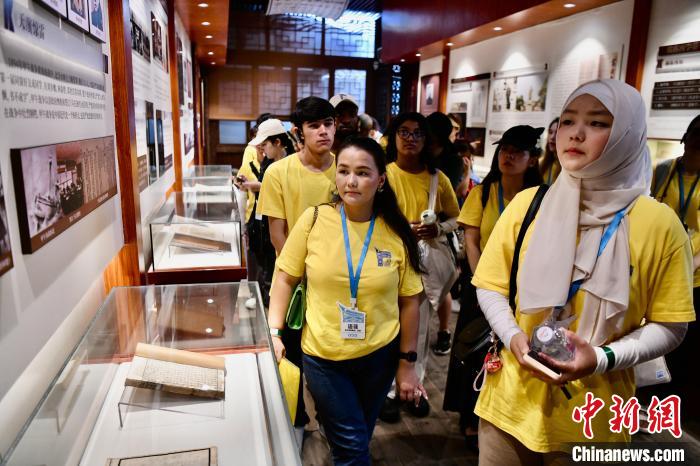 8月28日,“汉语桥”参赛外国大学生在三坊七巷参观福建民俗博物馆。中新社