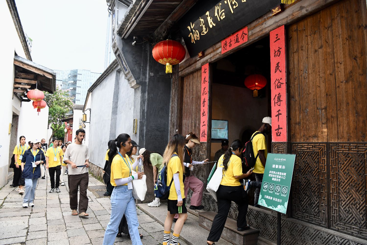 8月28日,在福建福州,“汉语桥”参赛外国大学生在三坊七巷参观福建民俗博物馆。中新社