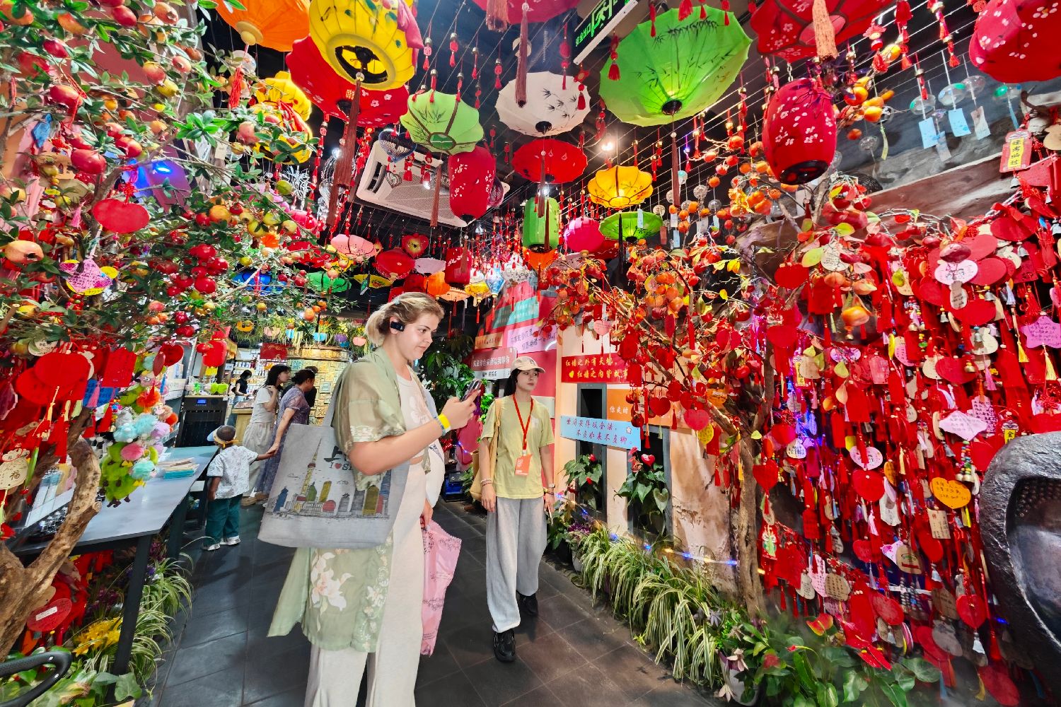 8月28日,“汉语桥”参赛外国大学生在三坊七巷观看艺术品展览。中新网