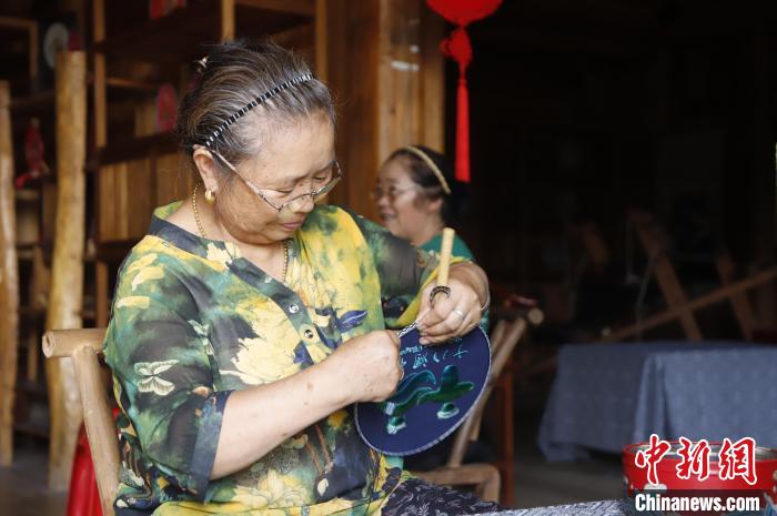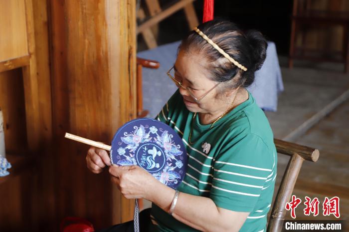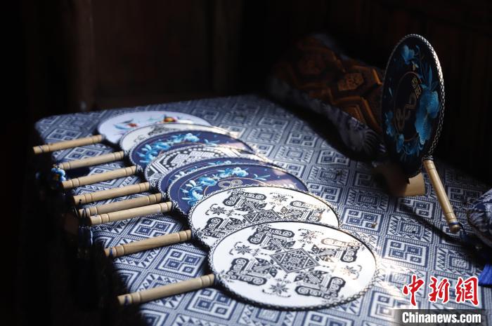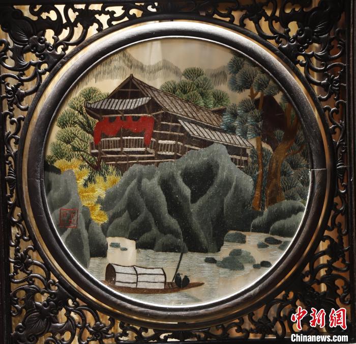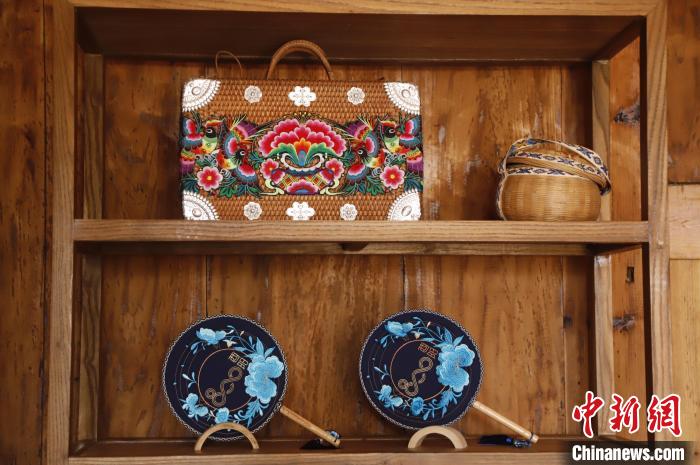 9月3日,在重庆市酉阳土家族苗族自治县花田乡何家岩村非遗工坊,一起探访重庆市级非物质文化遗产代表性项目酉州苗绣。酉州苗绣主要以透明纱和各种颜色的丝线、绒线绣制而成。酉州苗绣题材广泛、品种繁多,既有收藏价值极高的艺术珍品,又有实用大方的各类日用品,如时装、挂屏、手帕、被面等;既有壮丽豪放的巨型绣品,又有玲珑精巧的小件。2019年6月,酉州苗绣被列为重庆市第六批市级非物质文化遗产代表性项目。图为酉州苗绣作品展示。