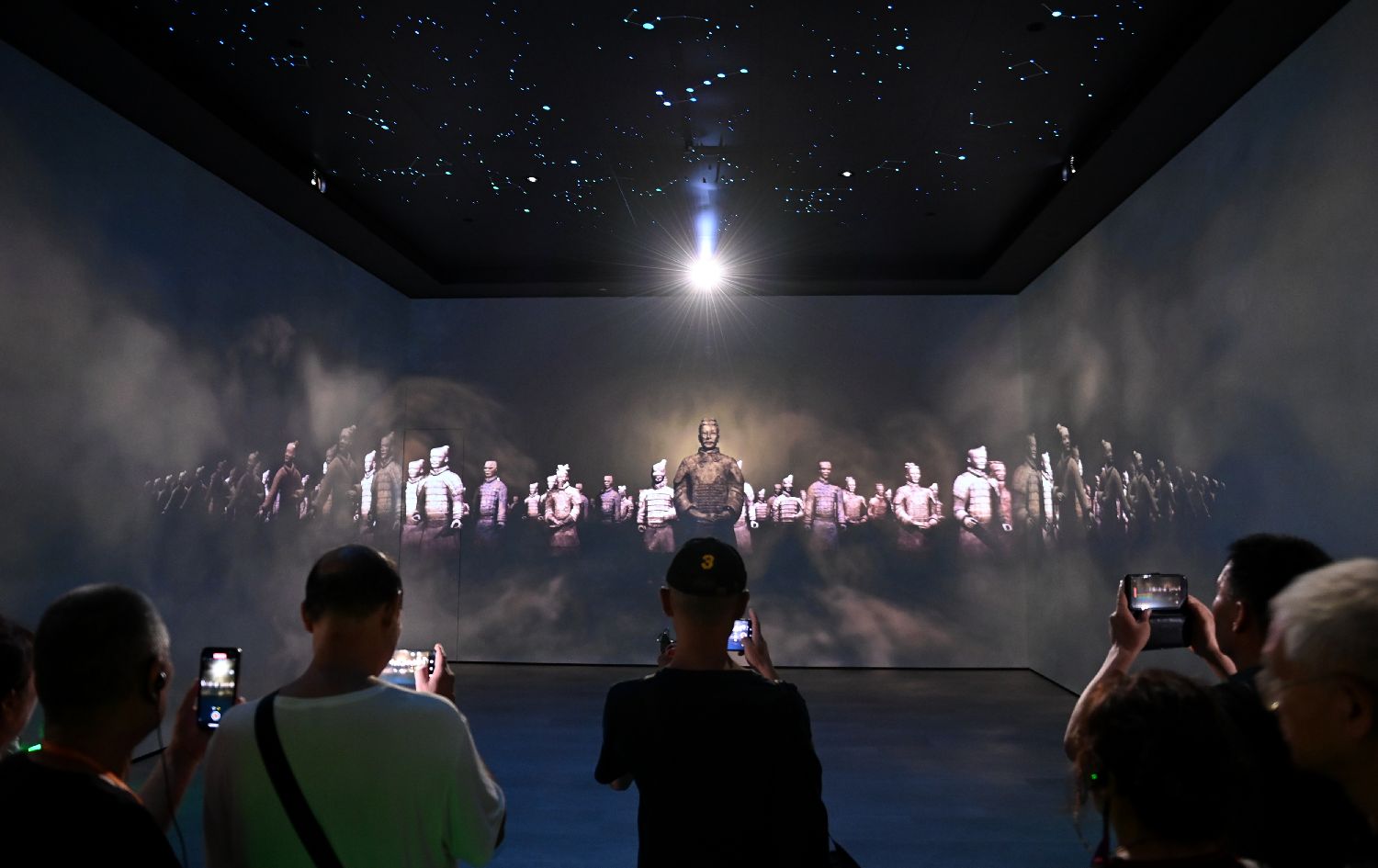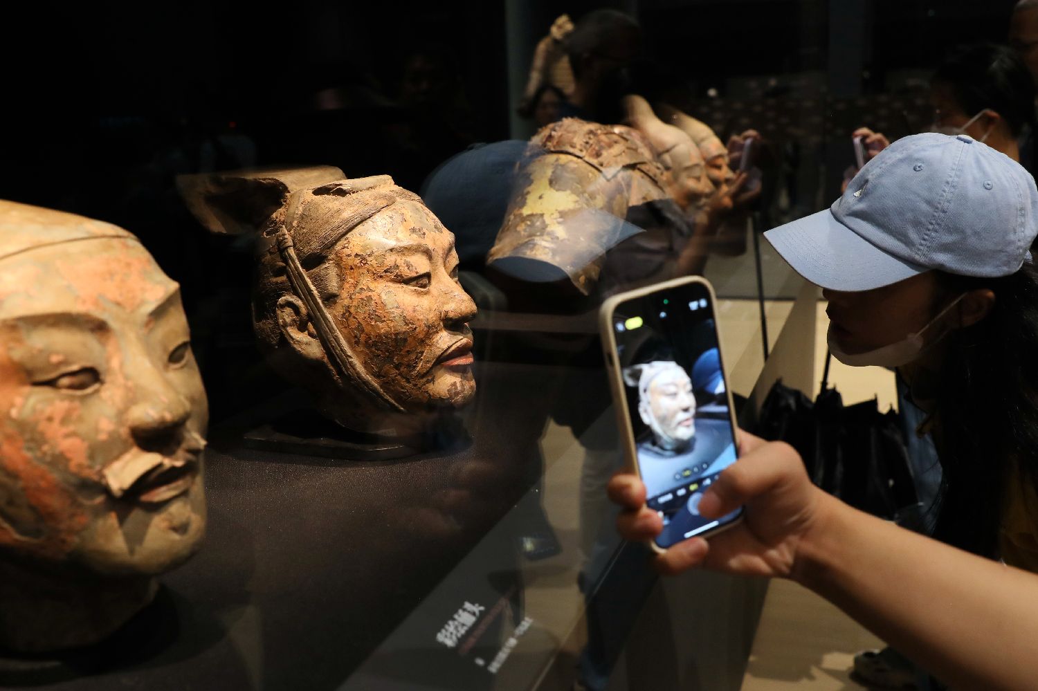 参观者用手机拍摄彩绘俑头。中新社