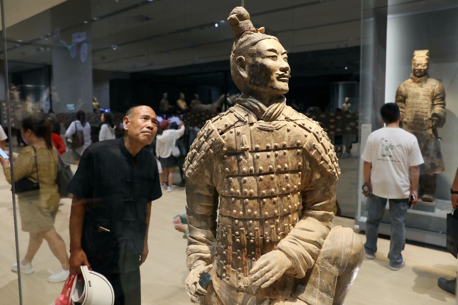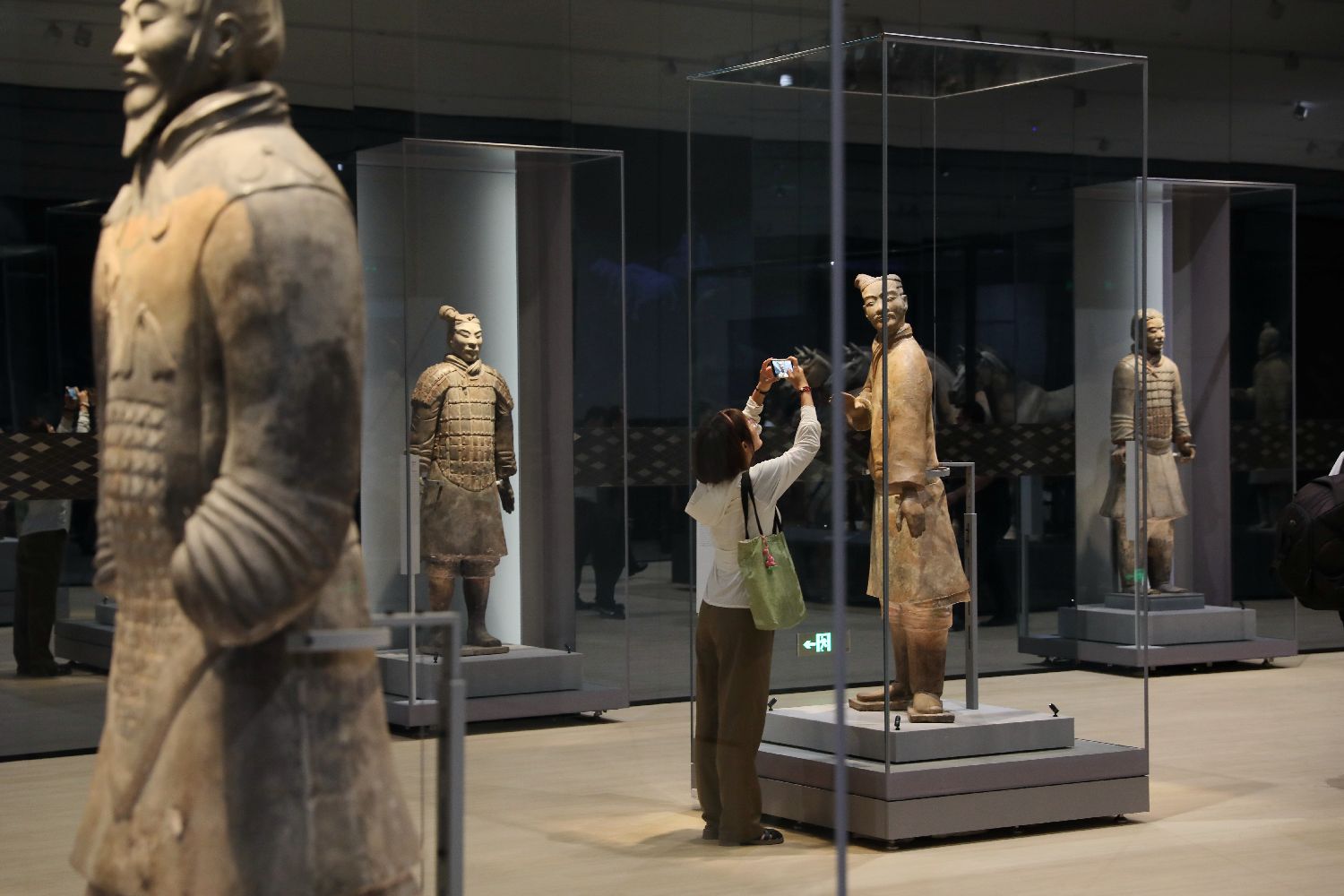 一名参观者正在拍摄秦佣。中新社