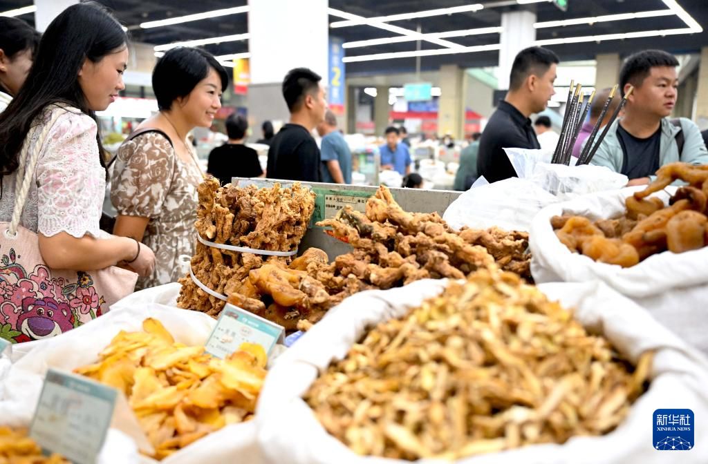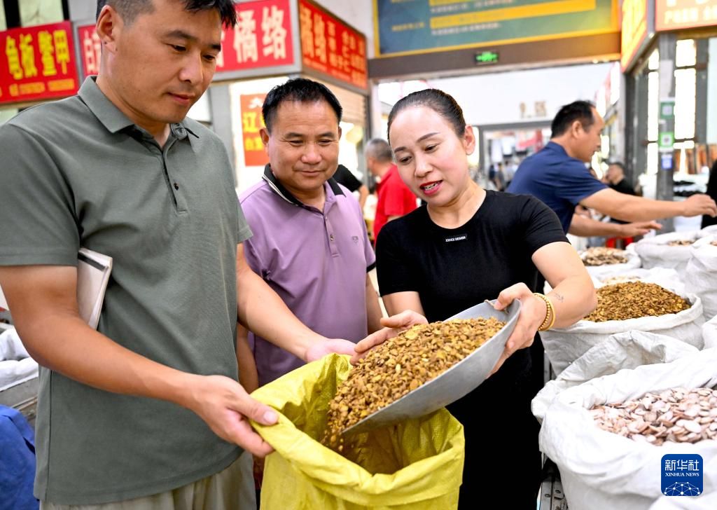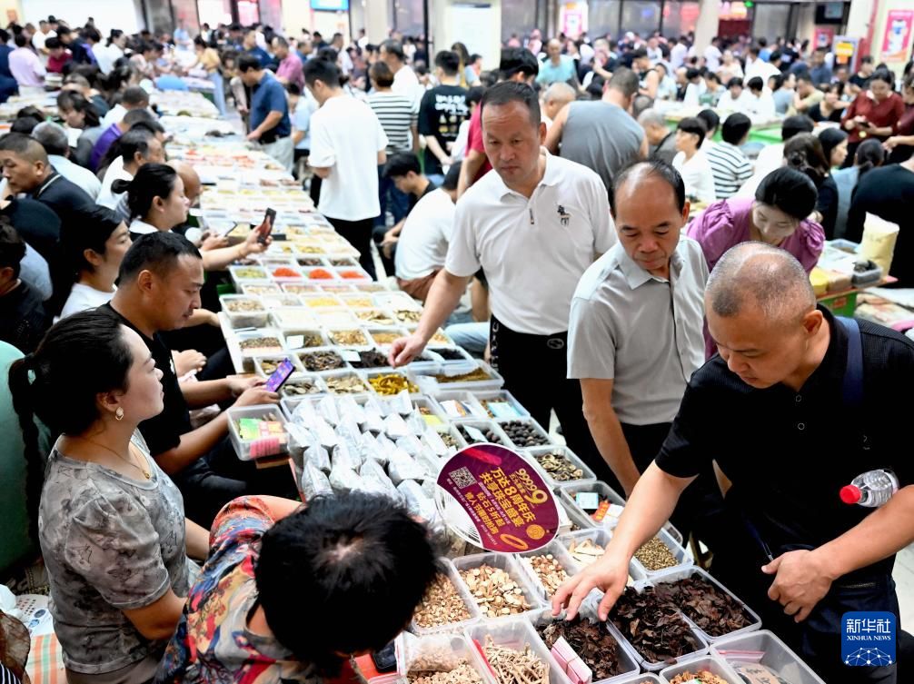 9月9日,2024国际(亳州)中医药博览会暨第40届全国(亳州)中药材交易会在安徽省亳州市开幕。图为中药材交易会现场。