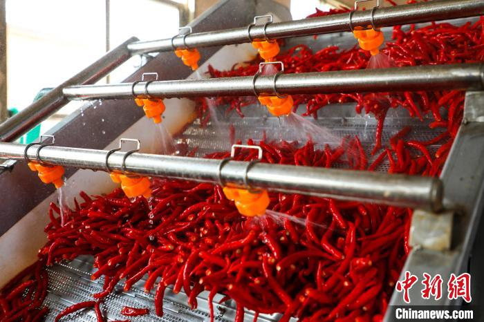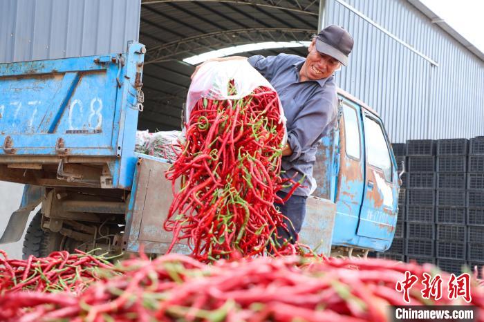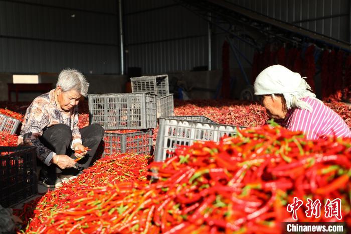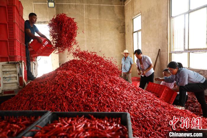 辣椒收购与加工厂,“辣椒海洋”火红一片。