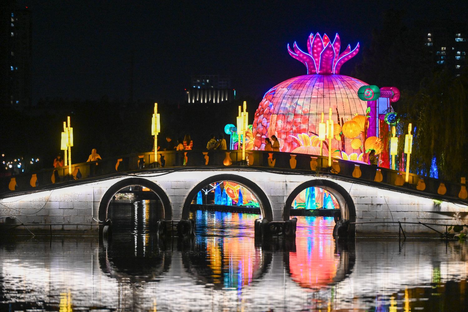 9月15日晚,“大观奇妙夜”活动在云南省昆明市大观公园正式开放。图为游客在大观公园内欣赏彩灯。中新社