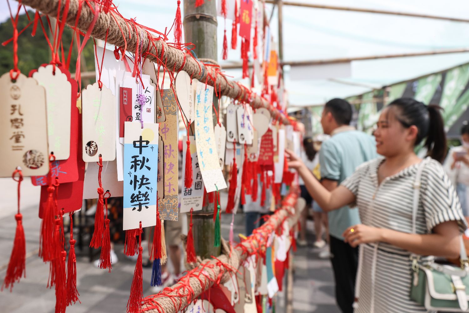 9月15日,贵州省贵阳市,市民悬挂的幸运签。当日,贵阳孔学堂举行的2024(甲辰)年中秋节游园活动吸引不少市民前来参与体验,乐享中秋假期。中新社