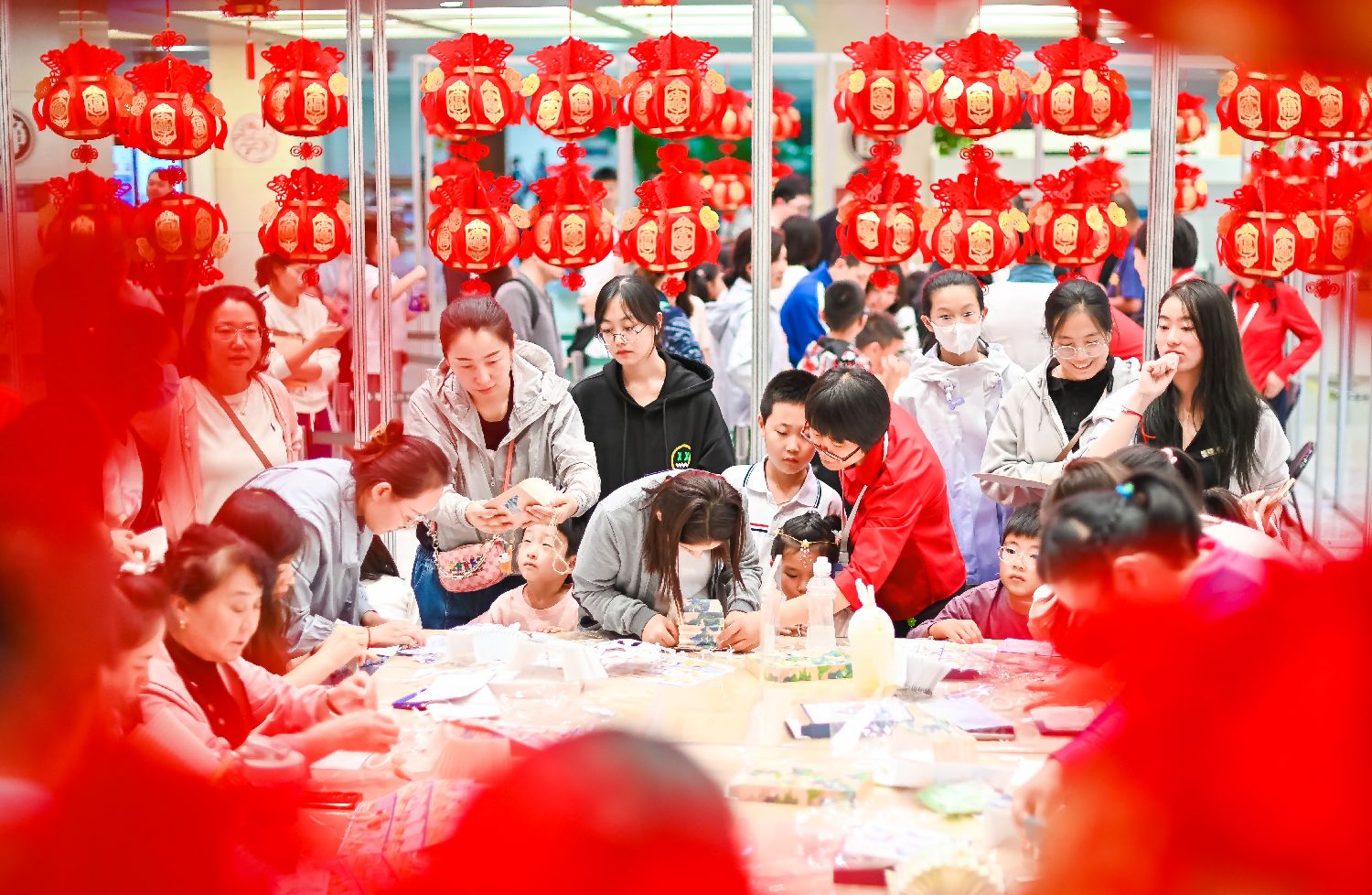 9月14日晚,在吉林省图书馆举办的“诗词醉月 图书馆中秋之夜”活动现场,市民们体验制作花灯。新华社