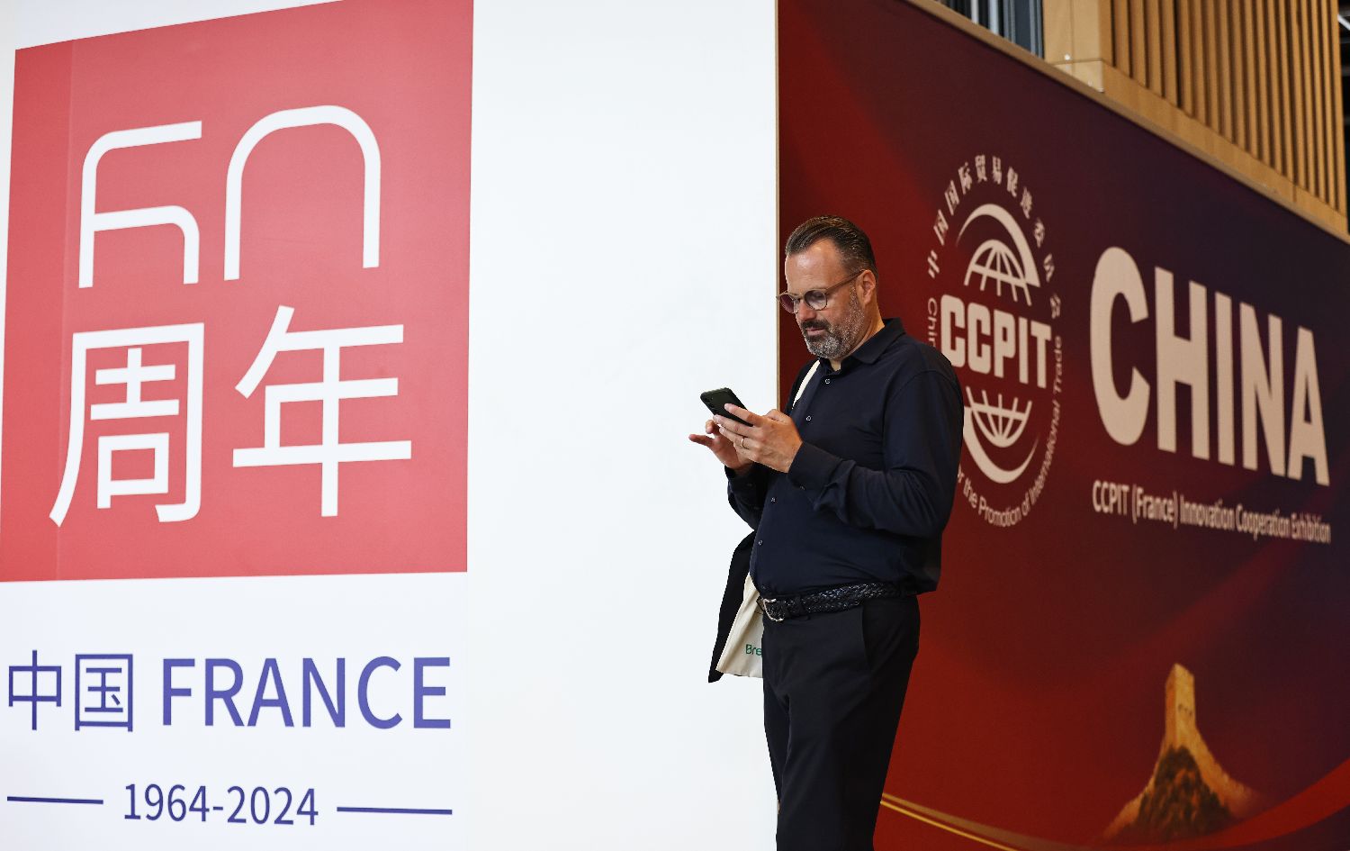 由中国国际贸易促进委员会主办、中国国际贸易促进委员会商业行业委员会承办,为期3天的“中国贸促”(法国)创新合作展览会17日在法国巴黎凡尔赛门会展中心开展。图为9月17日,在法国巴黎凡尔赛门展览中心,一名参观者在“中国贸促”(法国)创新合作展览会上参观。