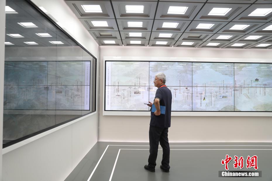 嘉宾在北京城市图书馆非遗文献馆内体验环绕式设计的“燕都印记”展示区。中新网