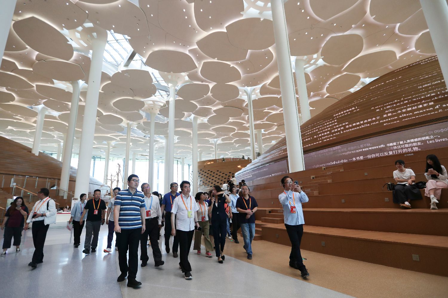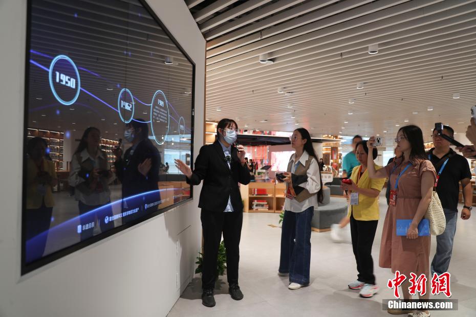 嘉宾参观北京城市图书馆。中新社