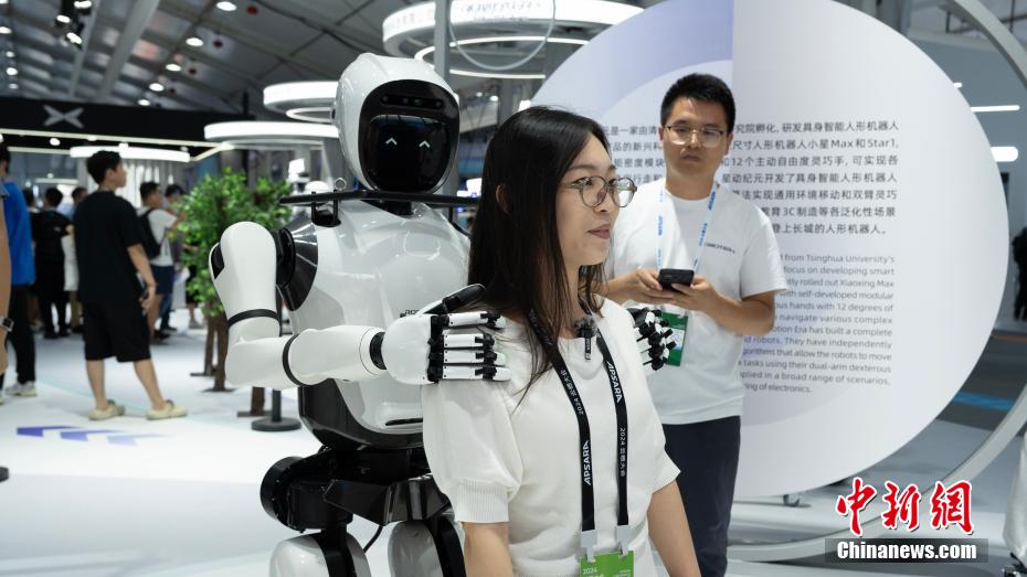 观众在“人工智能+”展馆参观。新华社