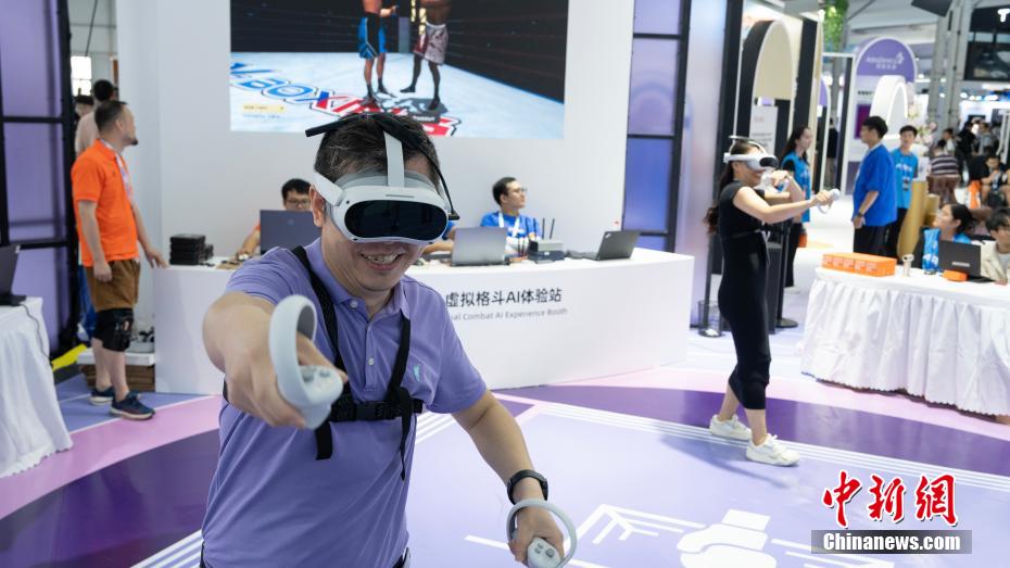观众在云栖大会体验虚拟格斗。中新网