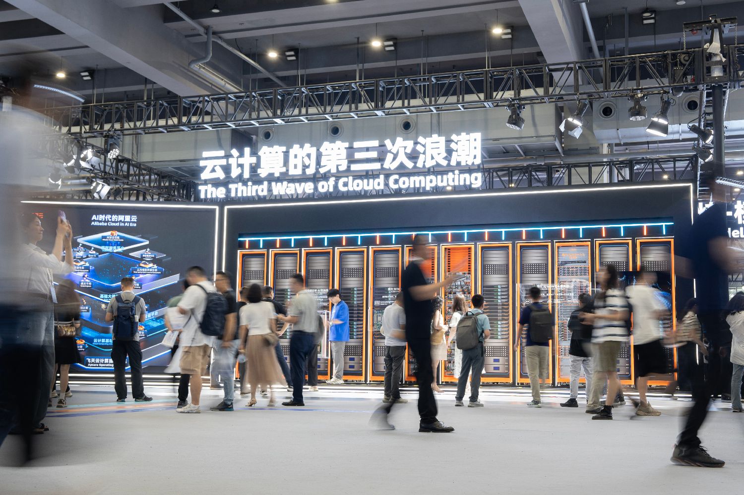 9月19日,以“云启智跃,产业蝶变”为主题的2024云栖大会在浙江杭州云栖小镇开幕,多款前沿技术亮相。图为云栖大会现场。中新社