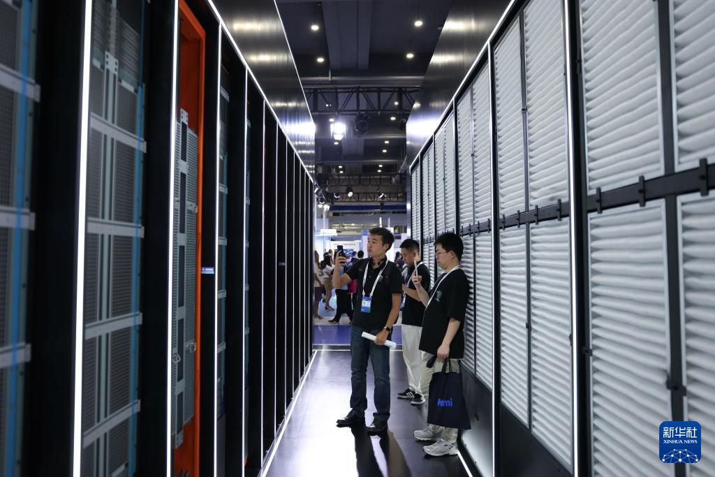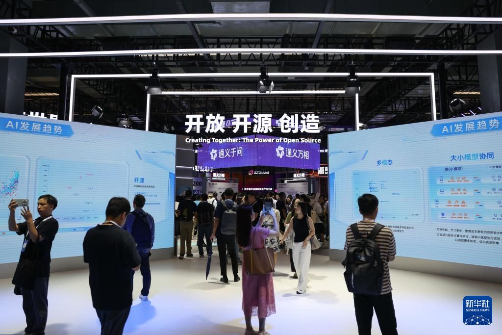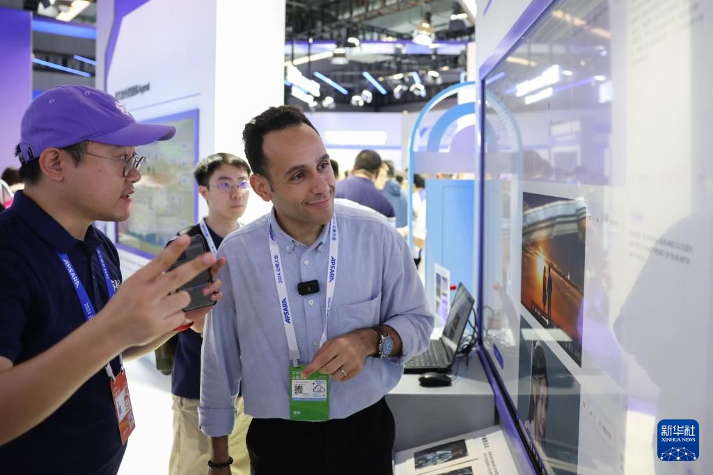 媒体记者在“人工智能+”展馆了解AIGC视频创作应用。新华社