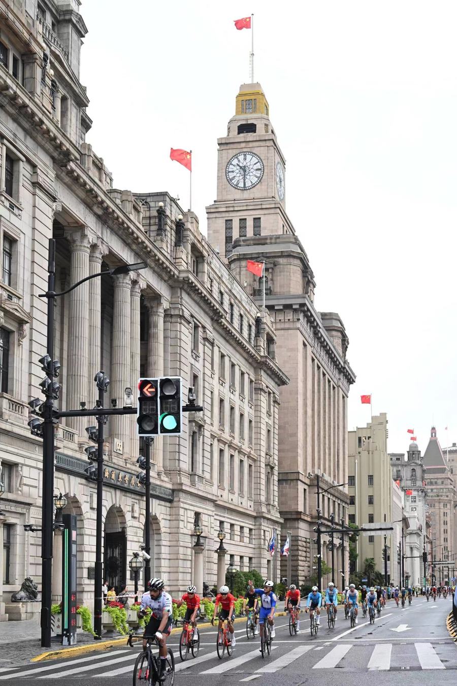 9月19日,一场盛大的自行车巡游活动在上海外滩上演,来自世界各地的职业车手巡游黄浦江畔吸引了众多路人的目光。上观新闻