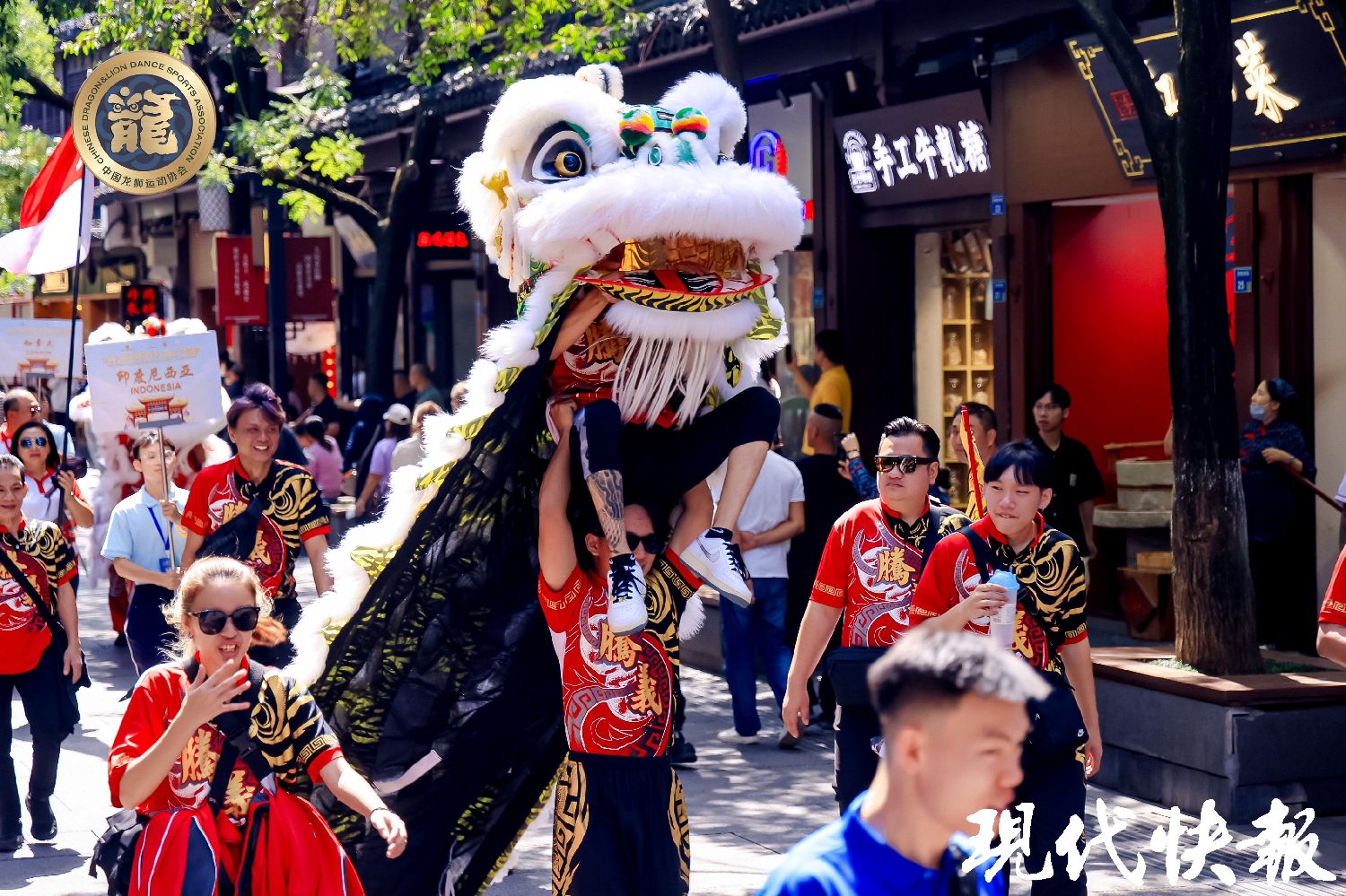 9月22日,赛事组委会安排了龙狮巡游活动,20支龙狮队伍在夫子庙和老门东与当地民众、游客“零距离”接触。南京《现代快报》