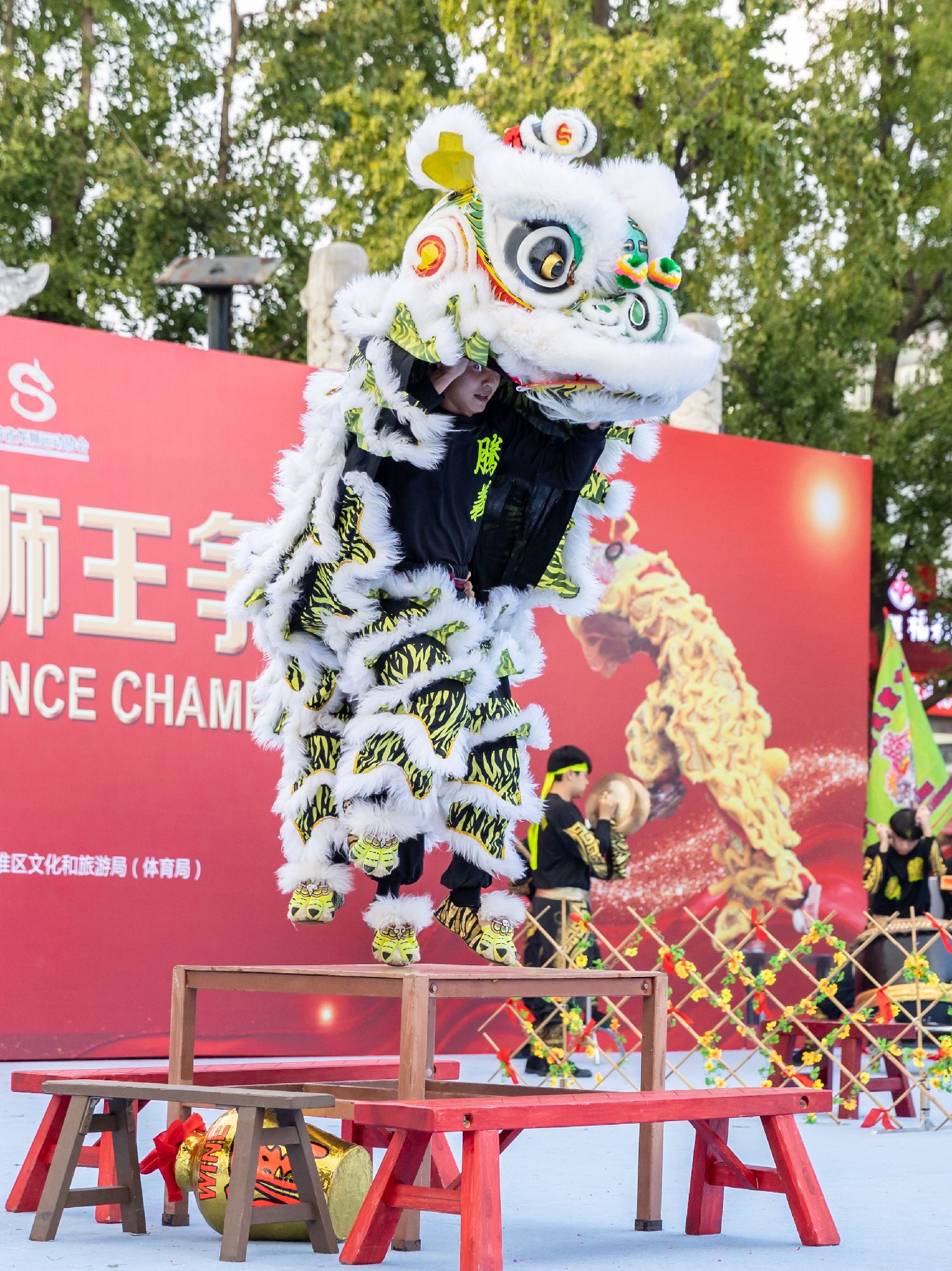 2024年世界华人狮王争霸赛21日在江苏南京开赛。南狮高桩自选套路项目吸引了来自中国、新加坡、马来西亚、缅甸、泰国等国家和地区的8支队伍参赛,中国深圳市宝安区西乡蚝业黄连胜醒狮团及新加坡滕义体育会获得金奖。赛事组委会相关负责人表示,舞狮起源于中国,深得世界华人喜爱。2024年世界华人狮王争霸赛在南京夫子庙举行,让“世界华人一家亲”的理念更加深入人心。图为9月22日,南狮传统套路比赛之前,组委会举行了开赛仪式。南京《现代快报》