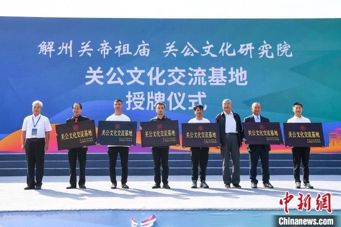 开幕式上6家单位获得“关公文化交流基地”牌匾。中新网